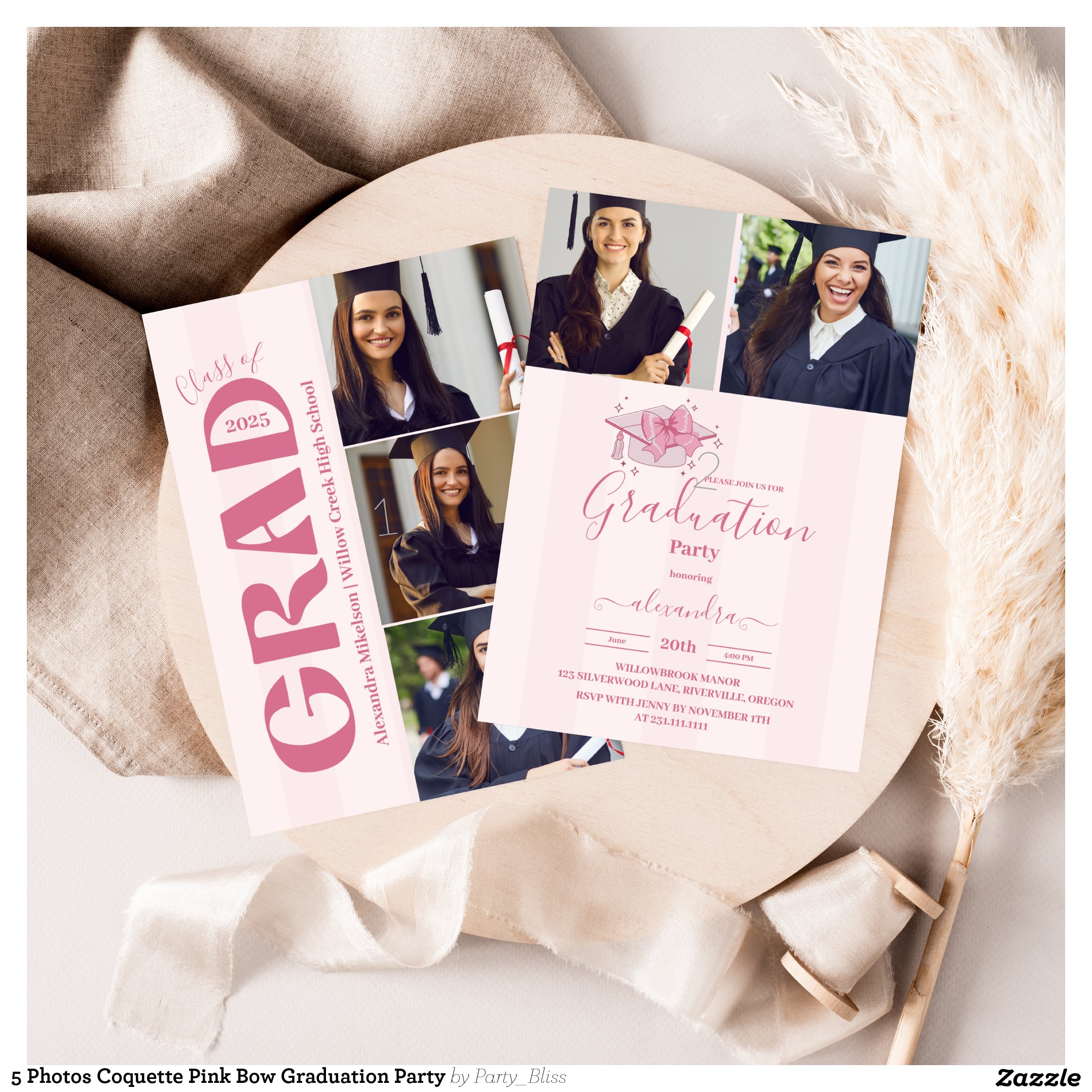 Be the first to review “5 Photos Coquette Pink Bow Graduation Party Invitation”