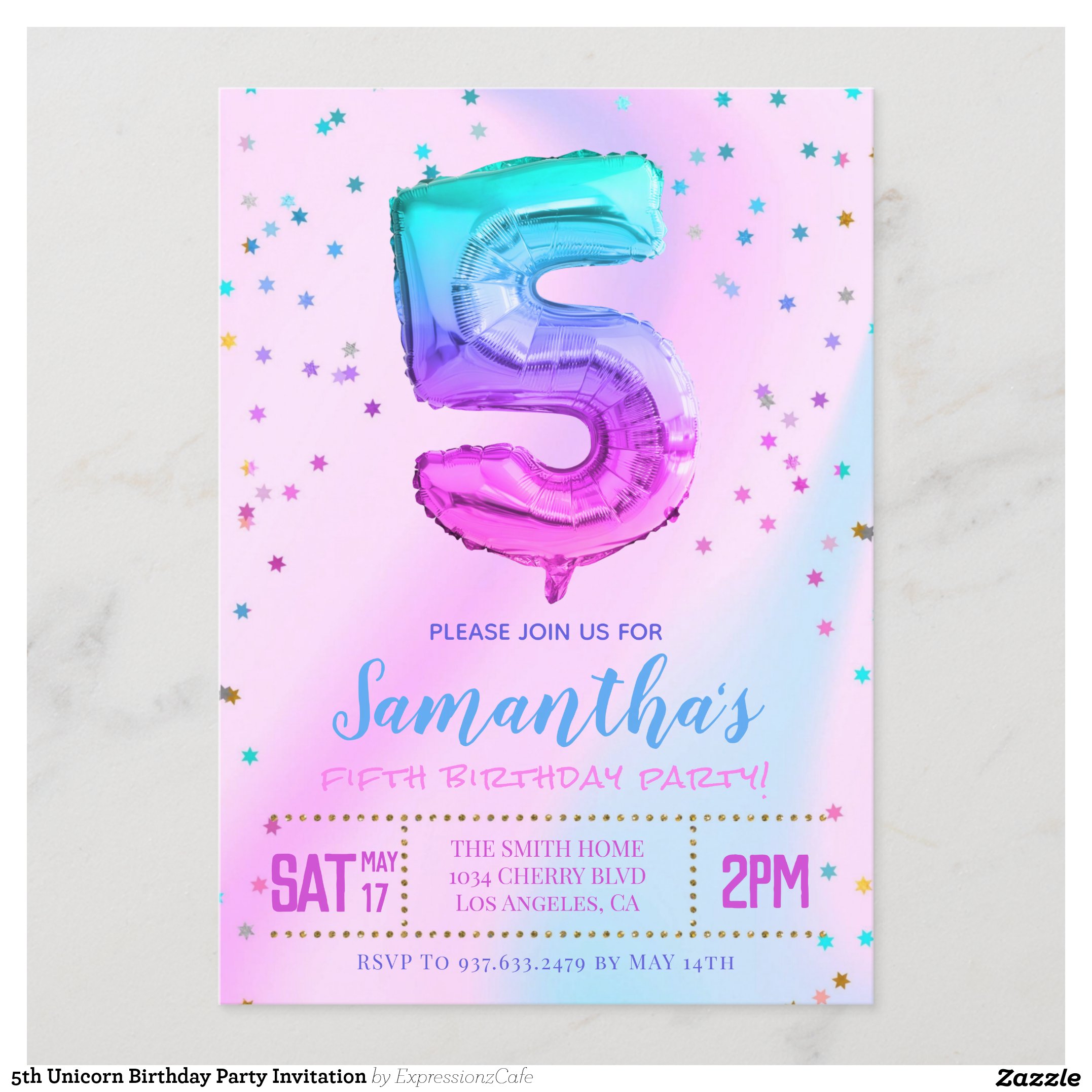 5th Unicorn Birthday Party Invitation