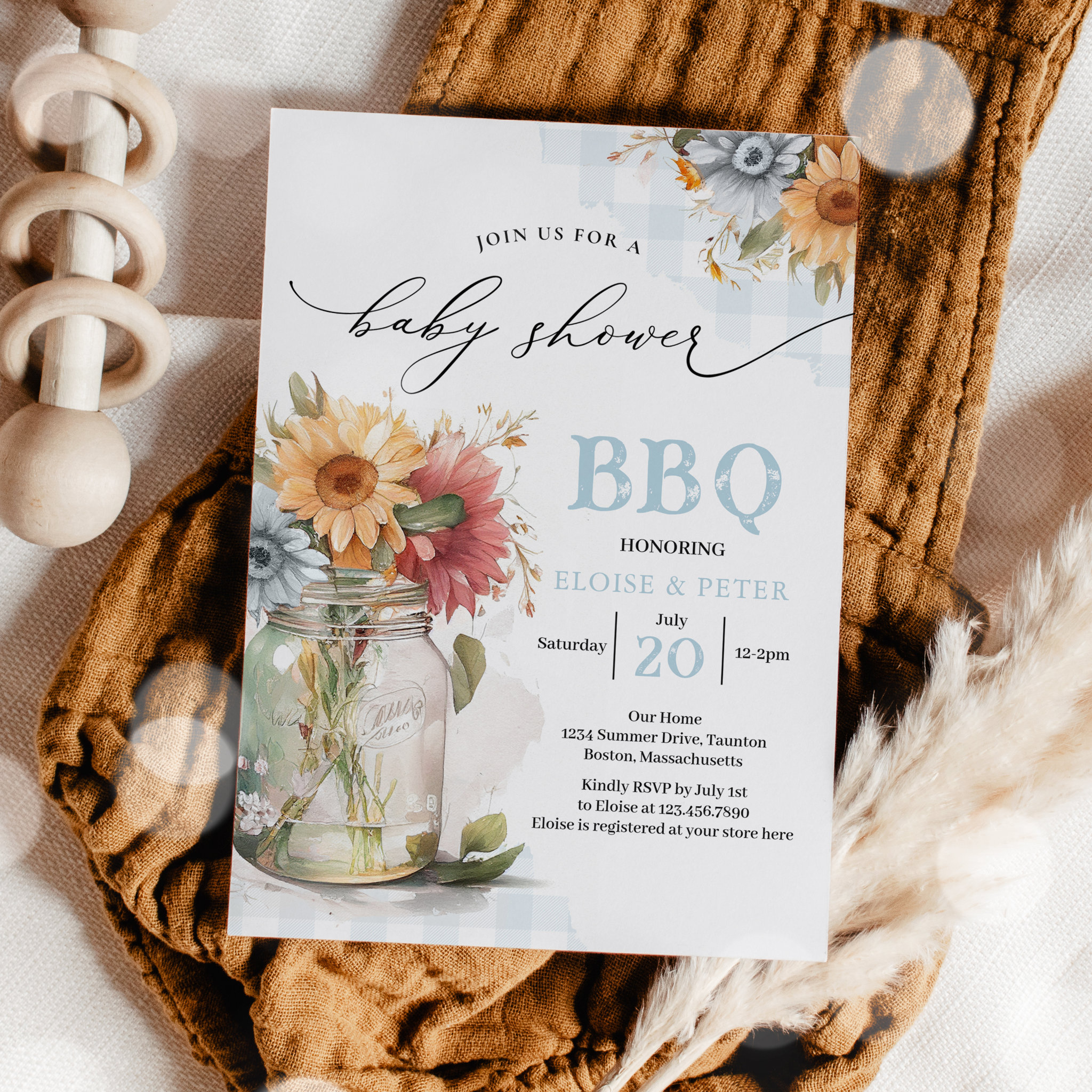 Be the first to review “BBQ Barbecue Sunflower Rustic Couples Baby Shower Invitation”