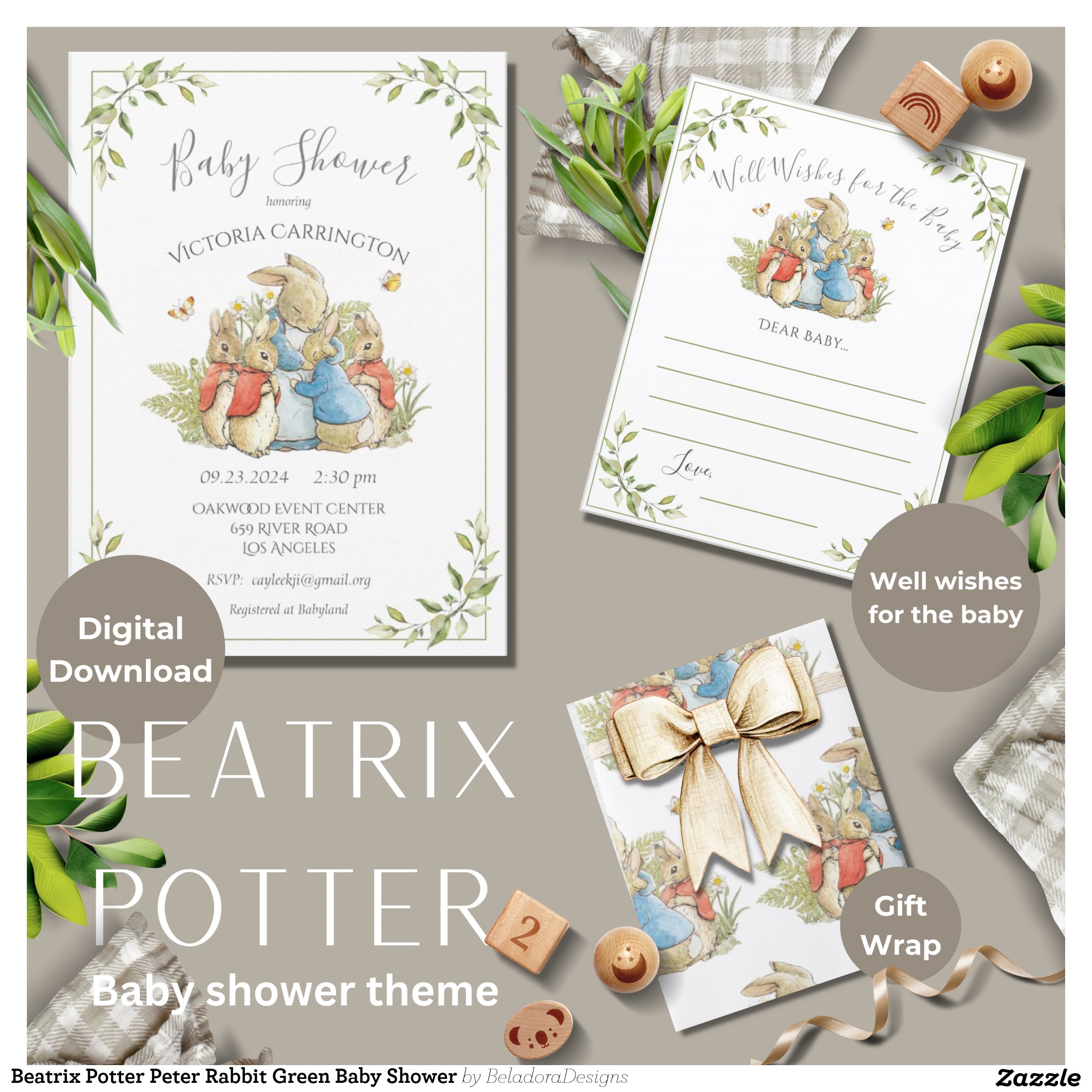 Be the first to review “Beatrix Potter Peter Rabbit Green Baby Shower Invitation”
