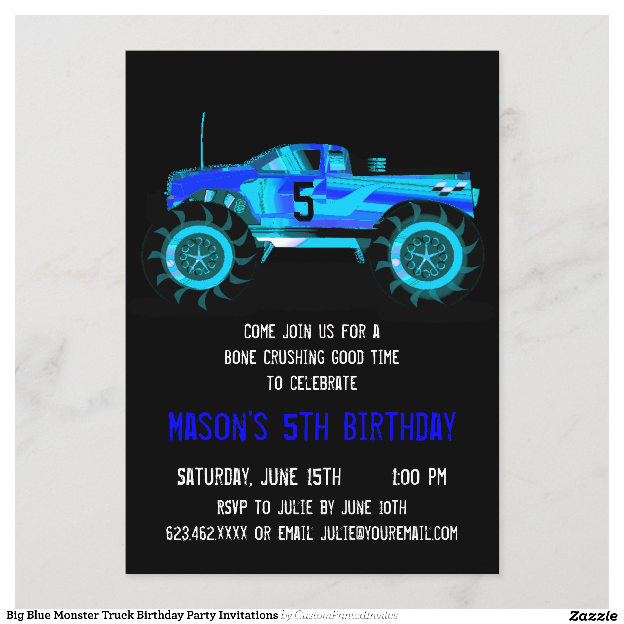 Big Blue Monster Truck Birthday Party Invitations