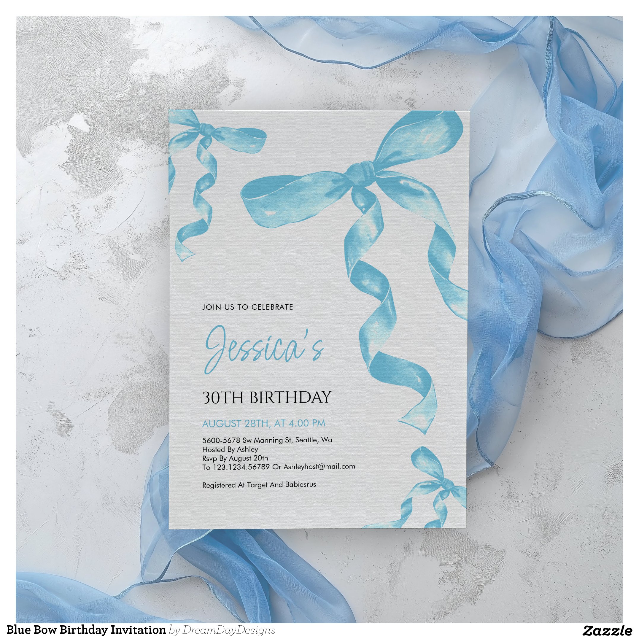 Be the first to review “Blue Bow Birthday Invitation”