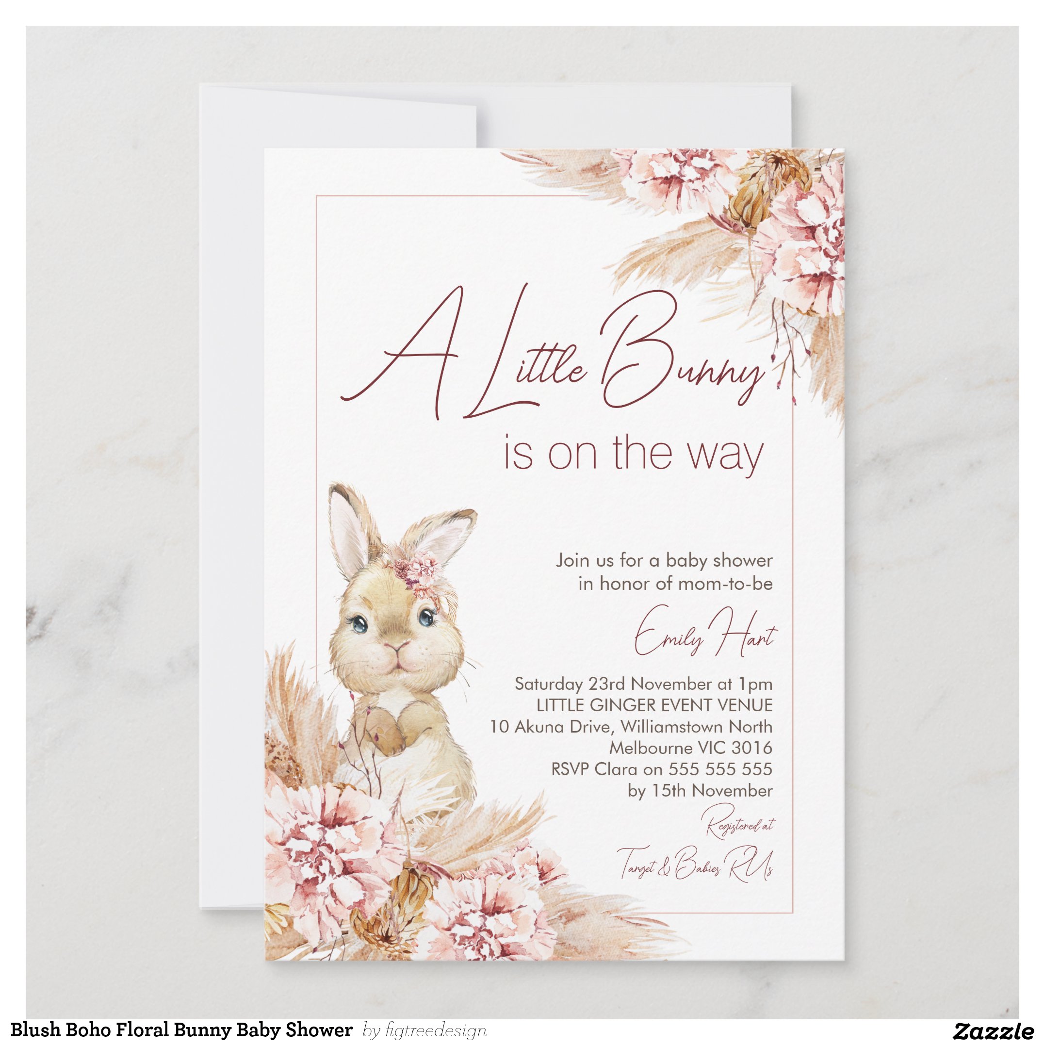 Be the first to review “Blush Boho Floral Bunny Baby Shower Invitation”