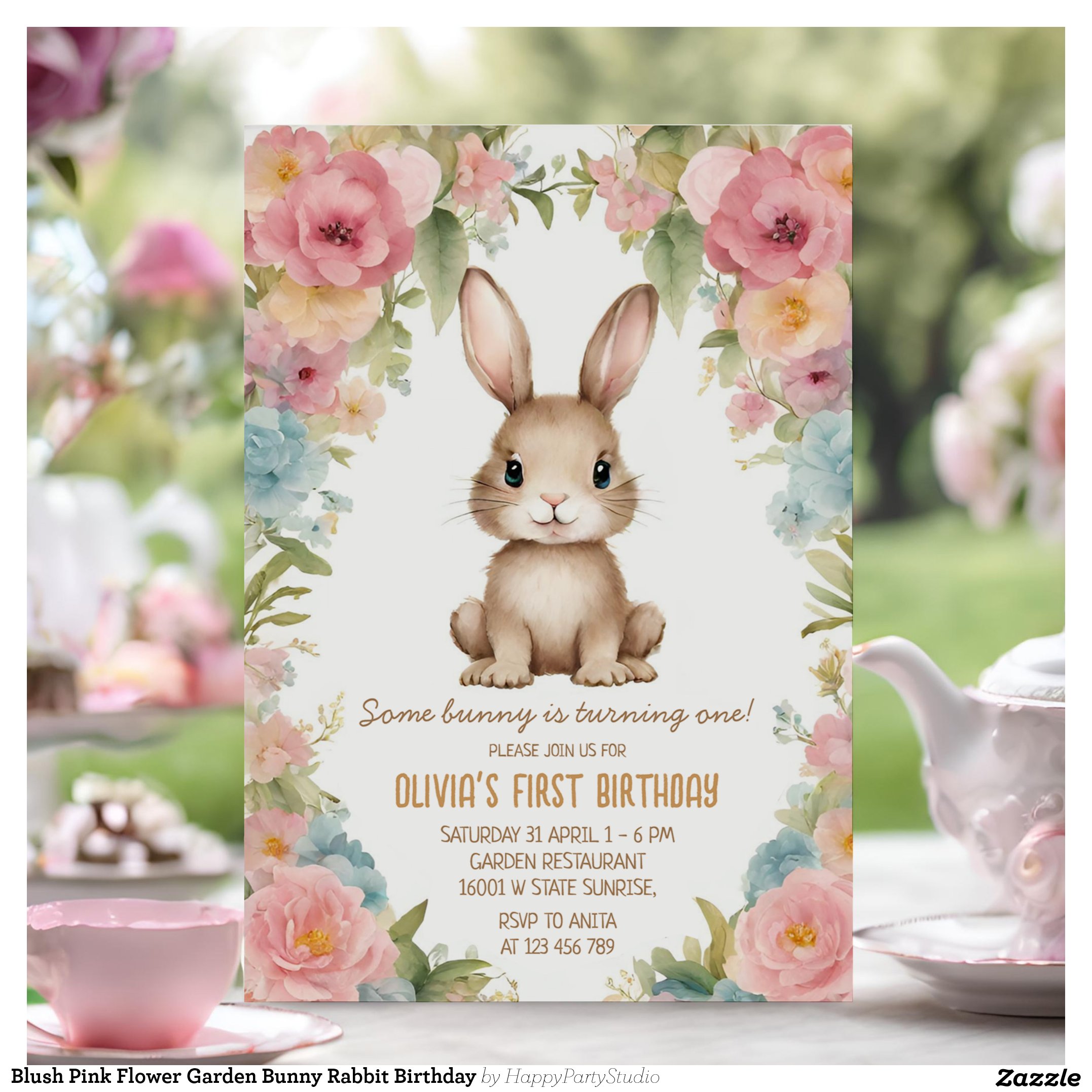 Be the first to review “Blush Pink Flower Garden Bunny Rabbit Birthday Invitation”