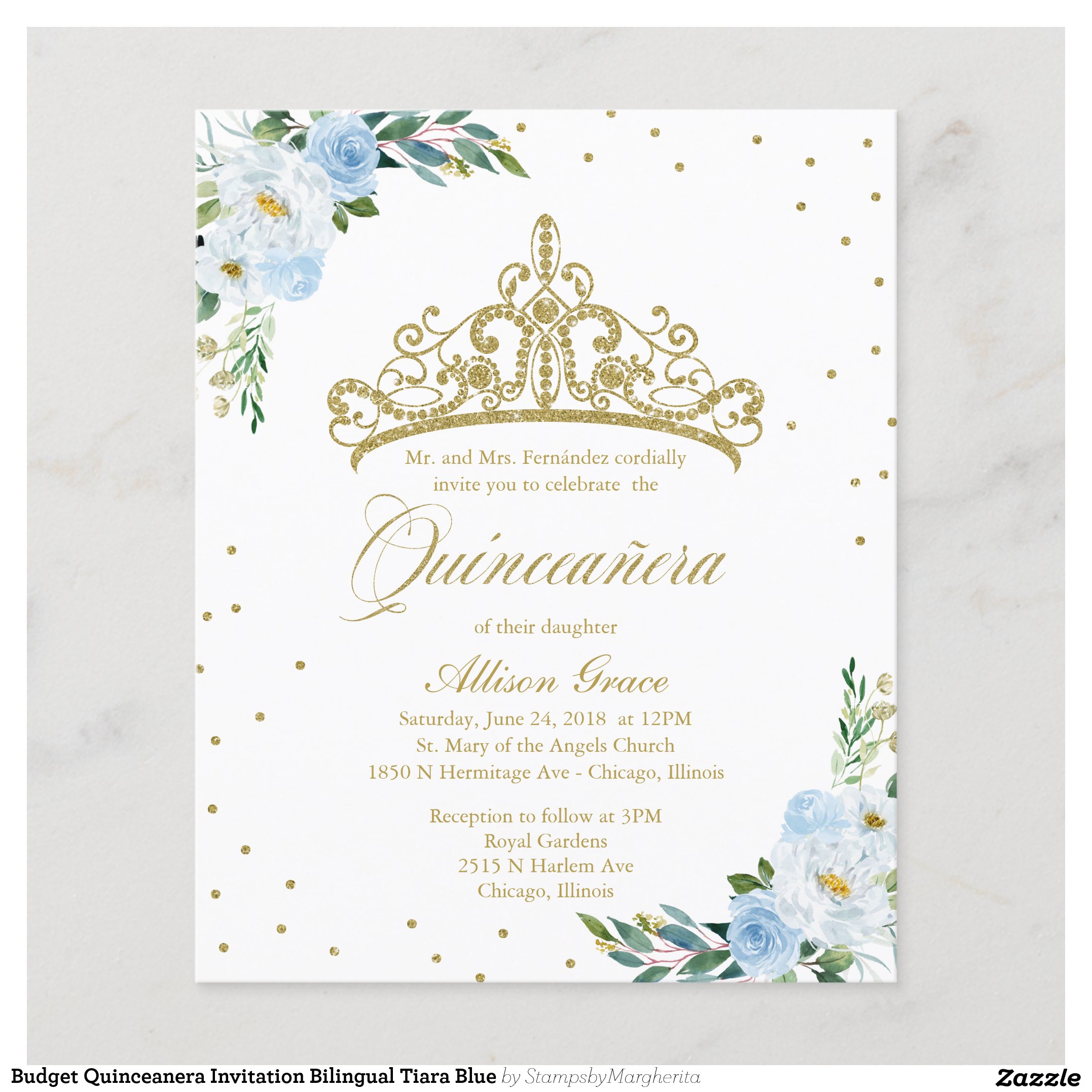 Budget Quinceanera Invitation Bilingual Tiara Blue