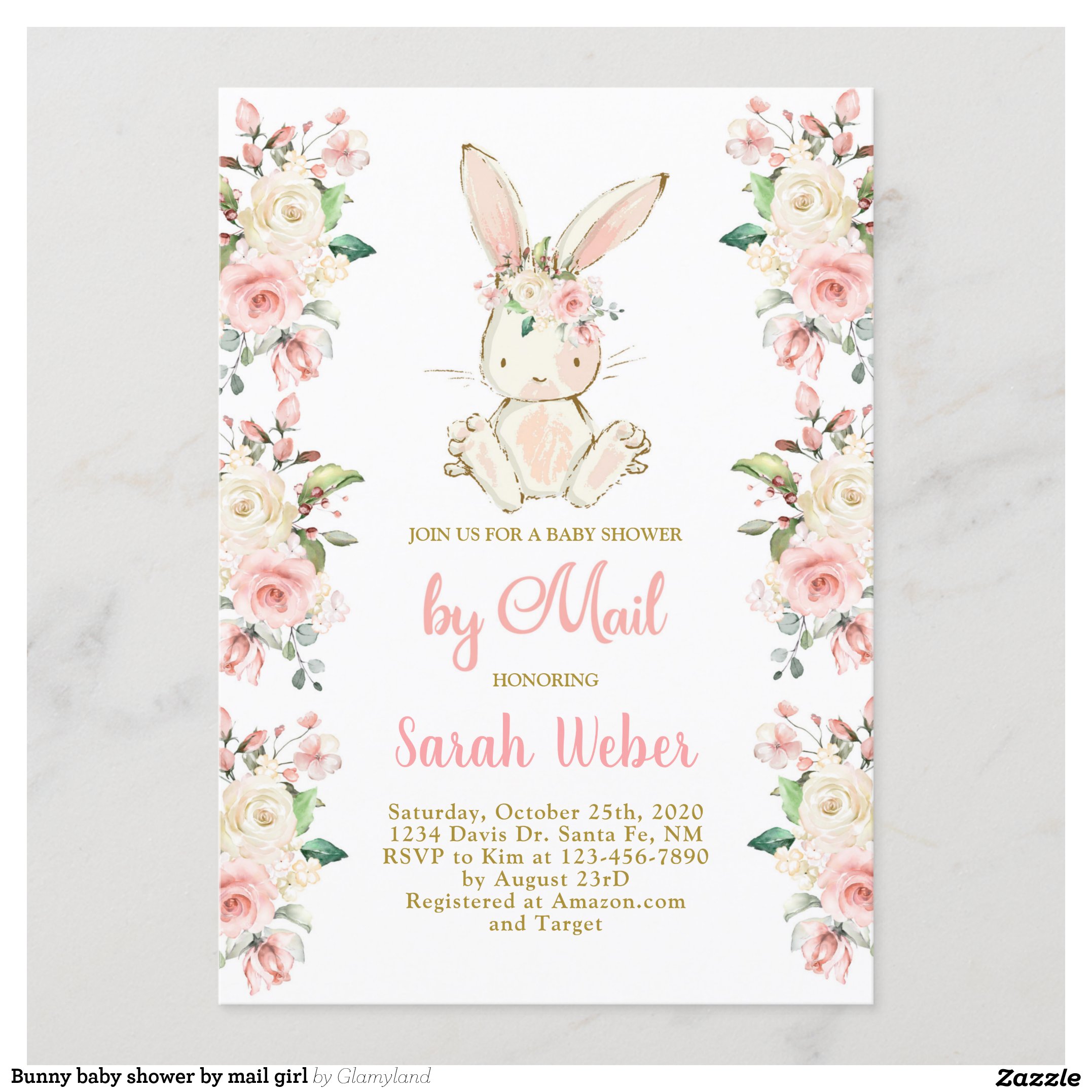 Bunny baby shower by mail girl invitation