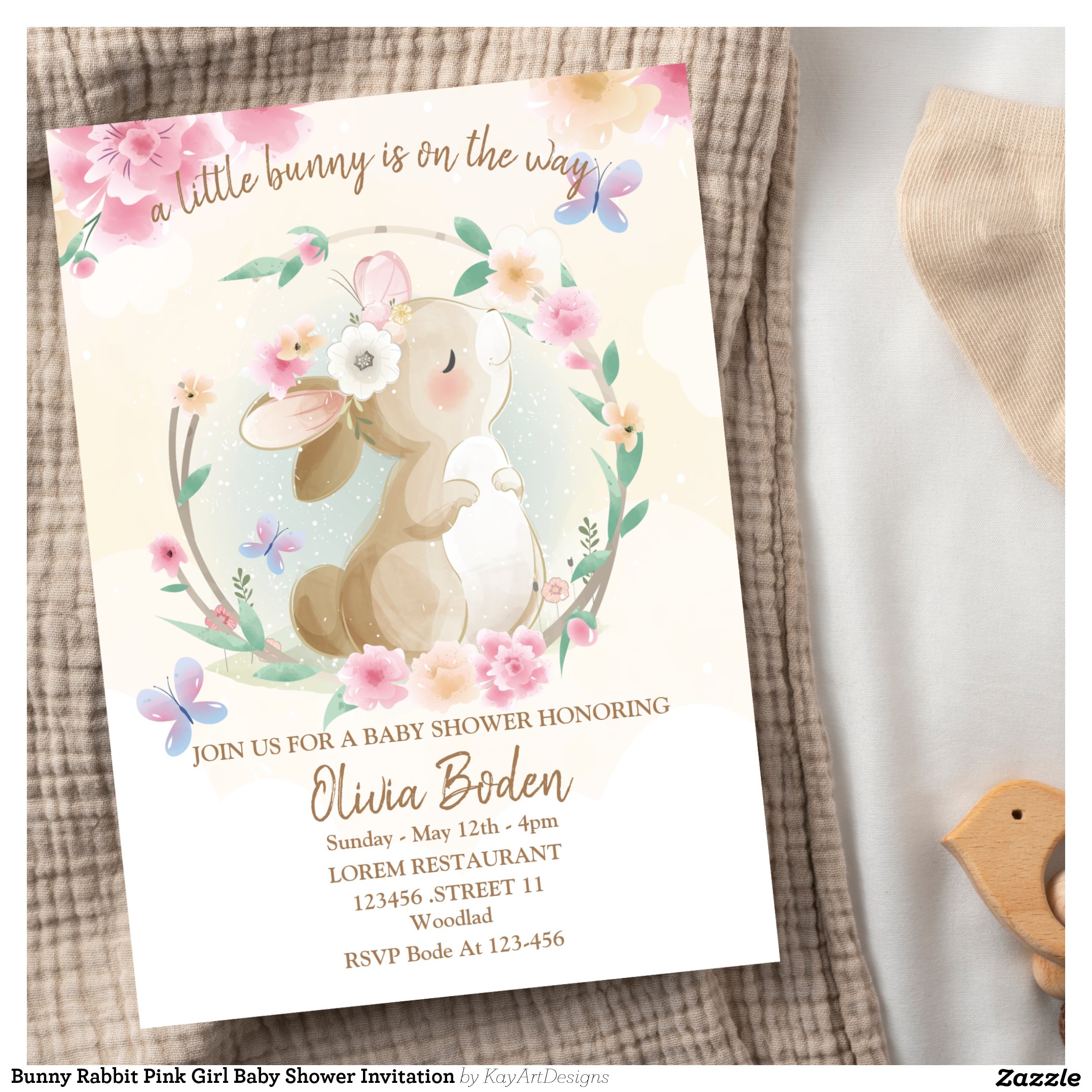 Bunny Rabbit Pink Girl Baby Shower Invitation