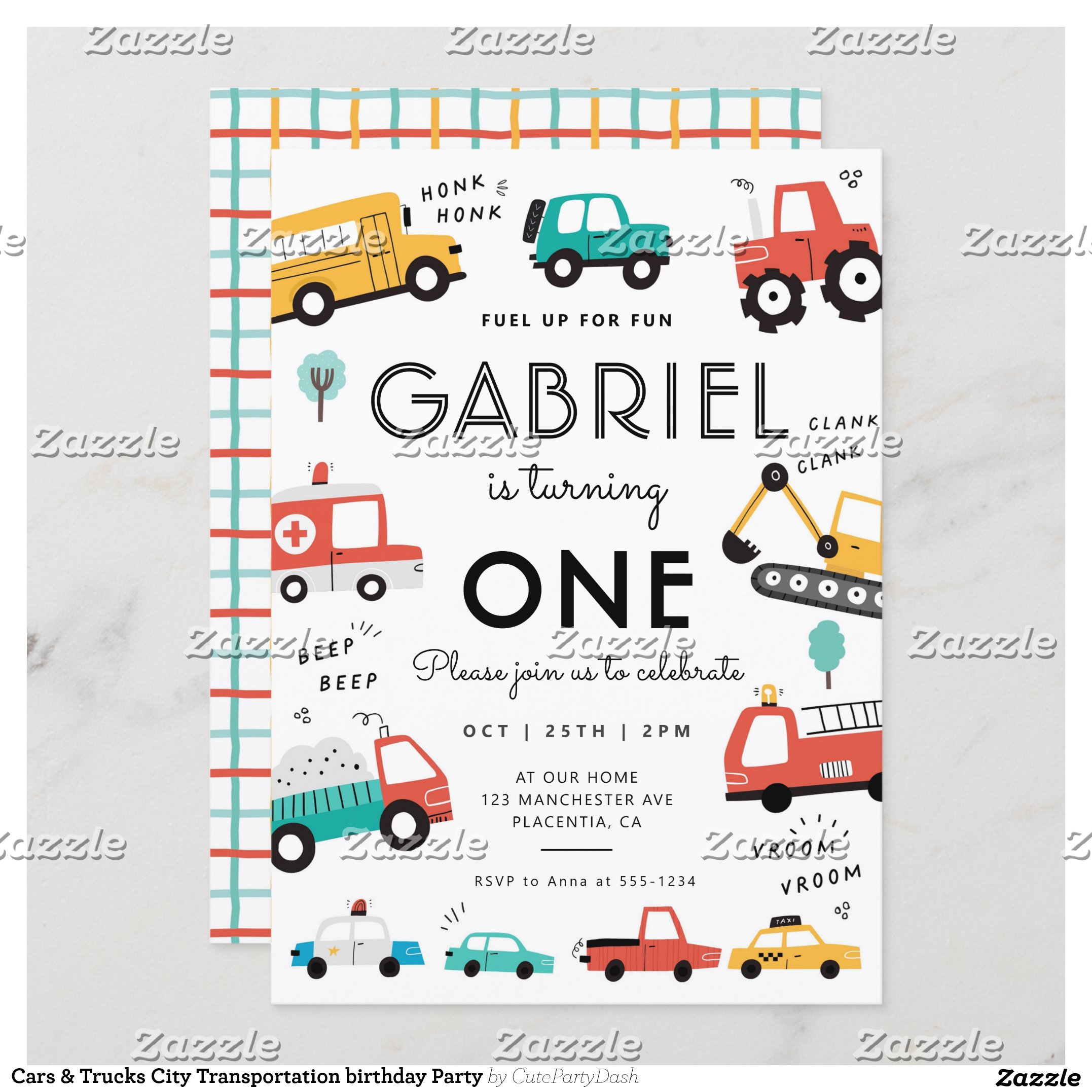 Be the first to review “Cars & Trucks City Transportation birthday Party Invitation”