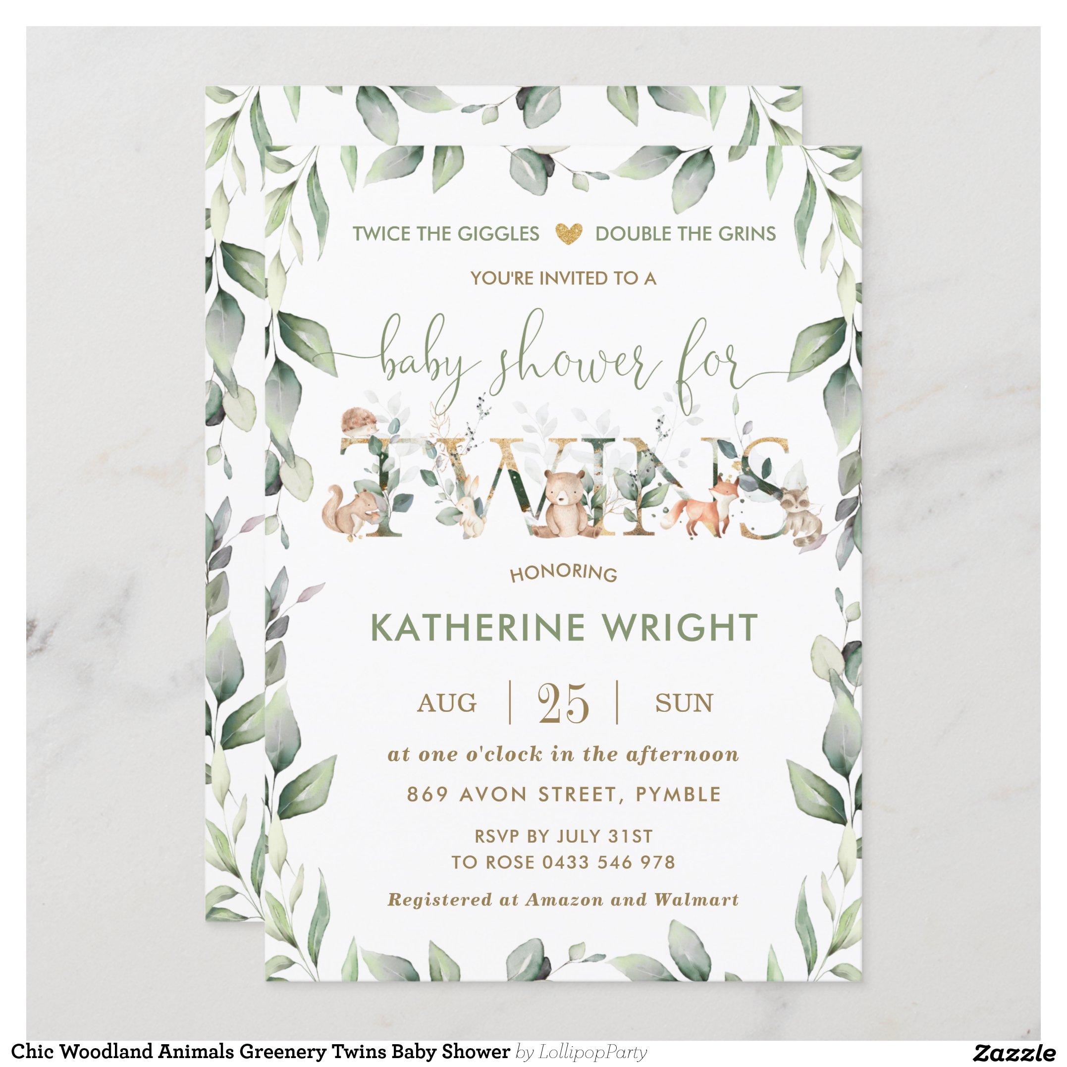 Be the first to review “Chic Woodland Animals Greenery Twins Baby Shower Invitation”