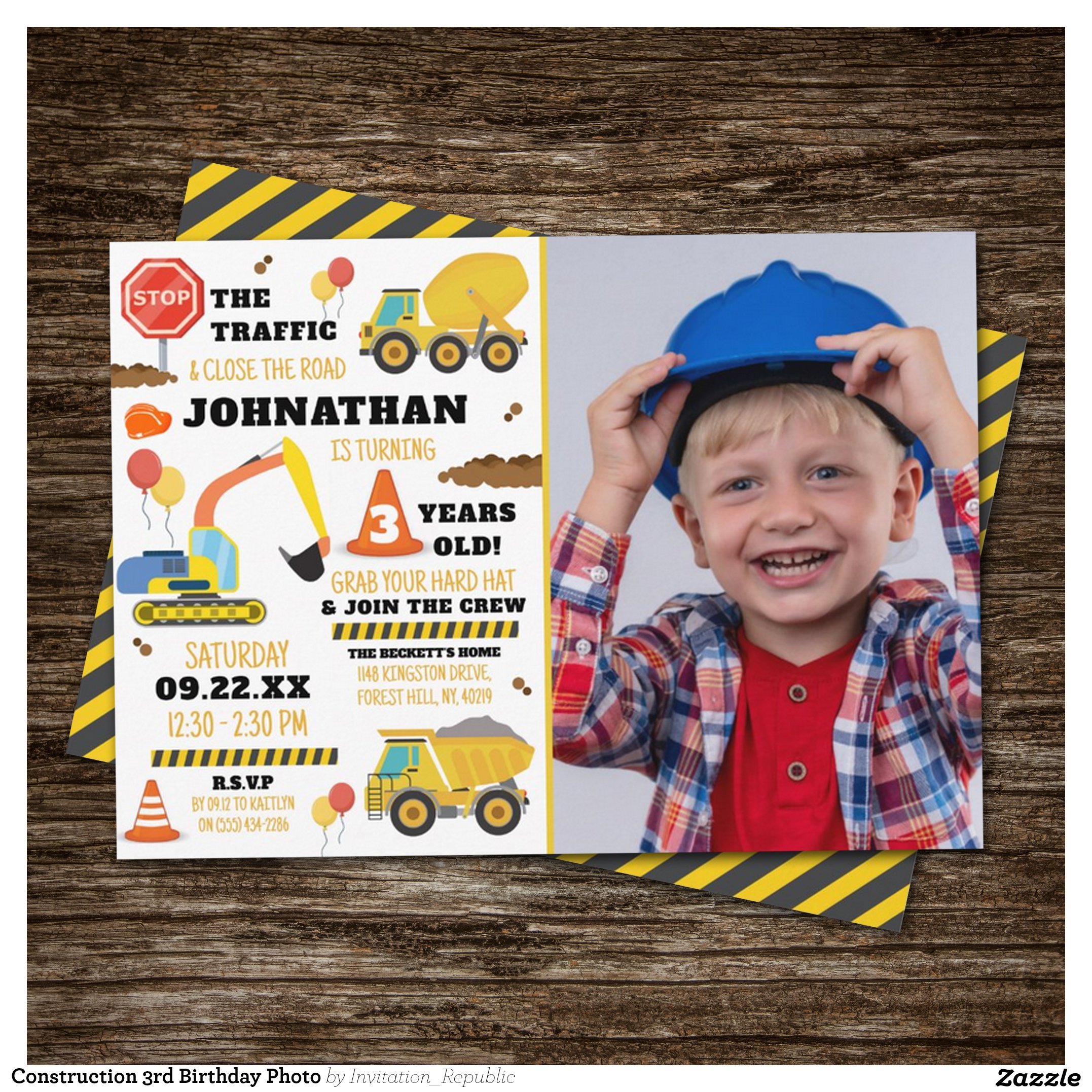 Construction 3rd Birthday Photo Invitation