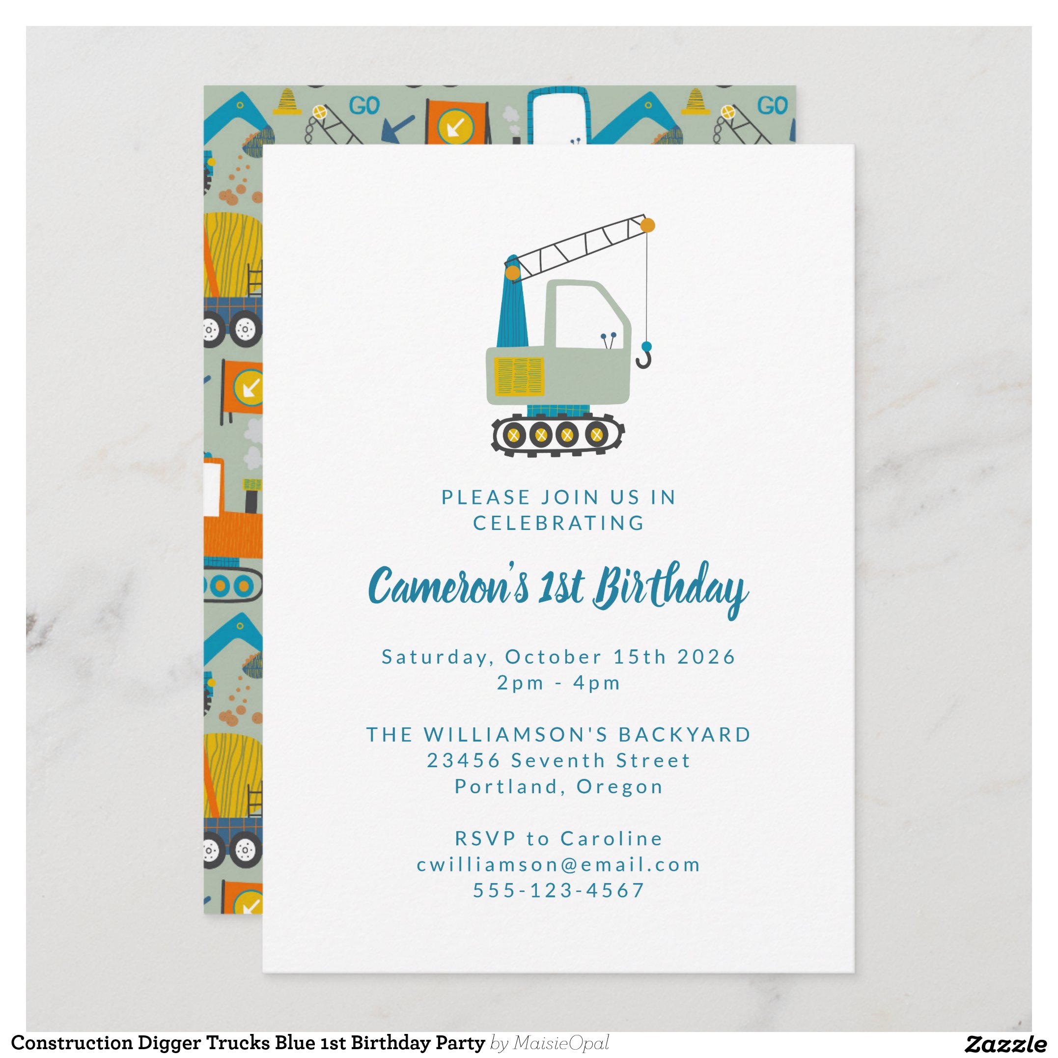 Be the first to review “Construction Digger Trucks Blue 1st Birthday Party Invitation”