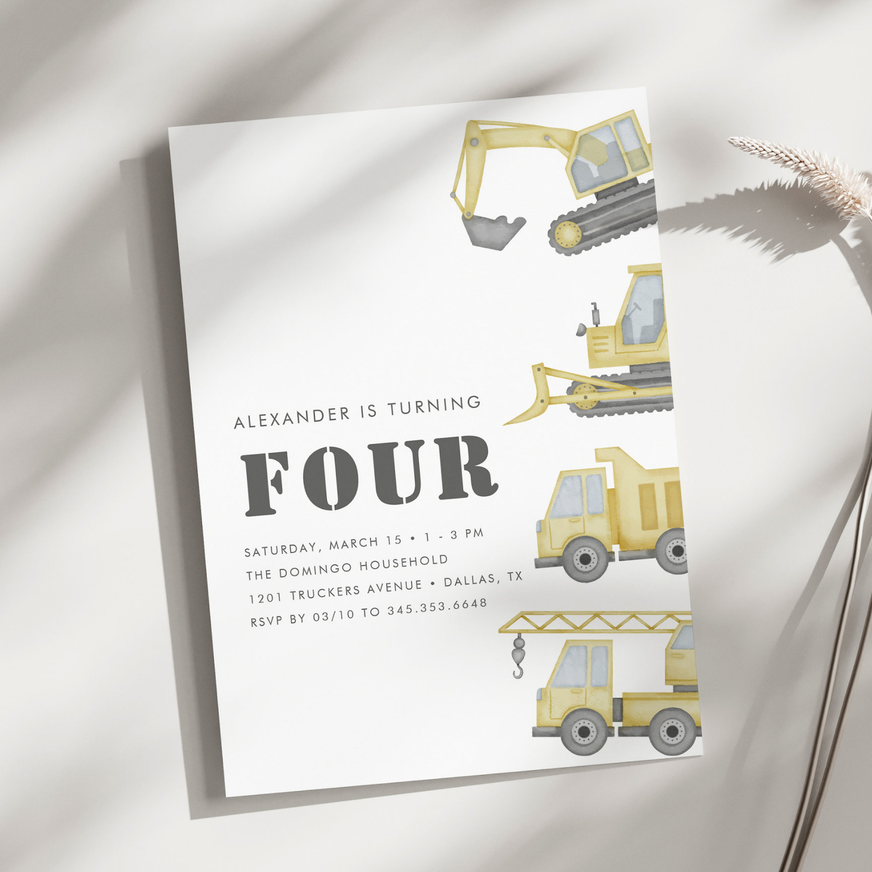 Be the first to review “Construction Truck Vehicles Boys 4th Birthday Invitation”