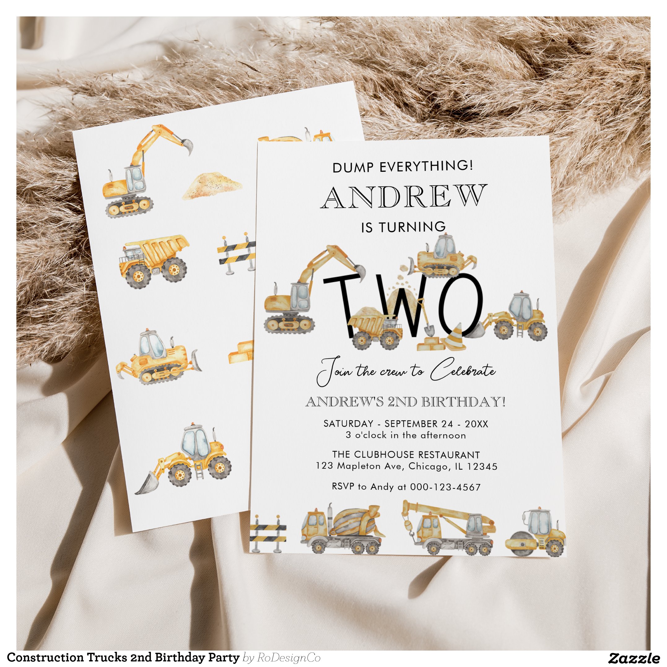 Be the first to review “Construction Trucks 2nd Birthday Party Invitation”