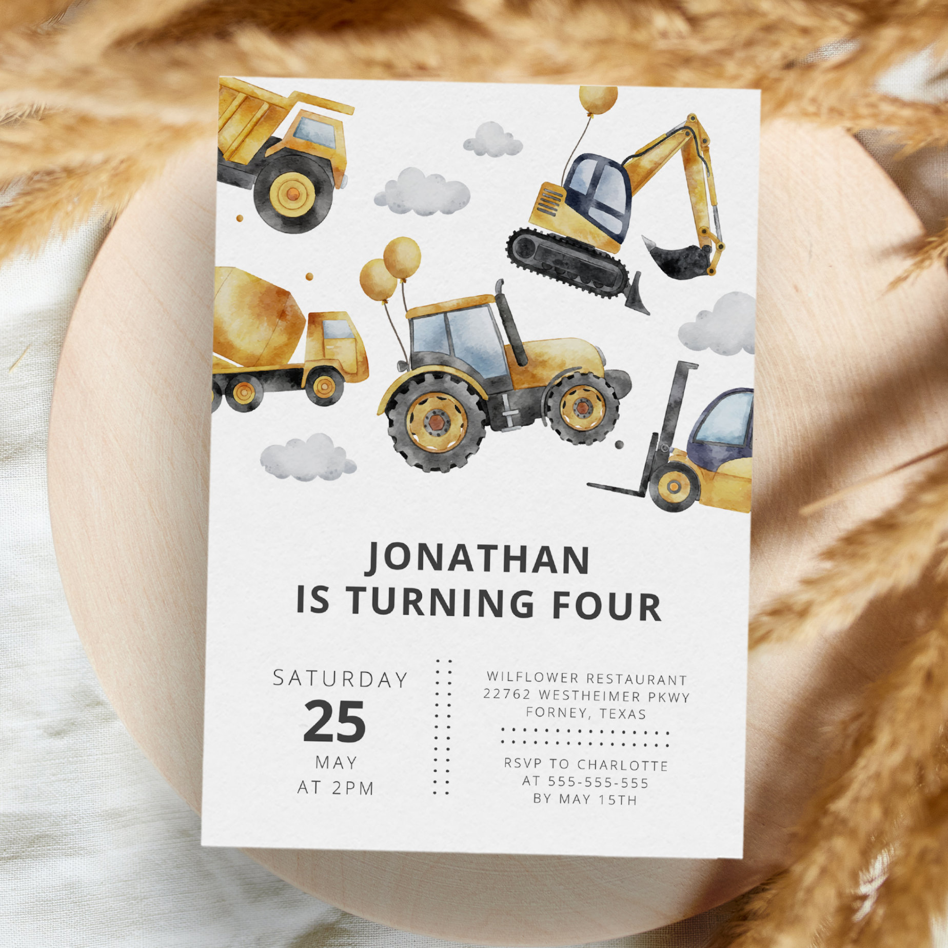 Be the first to review “Construction Trucks Any Year Kids Birthday Invitation”