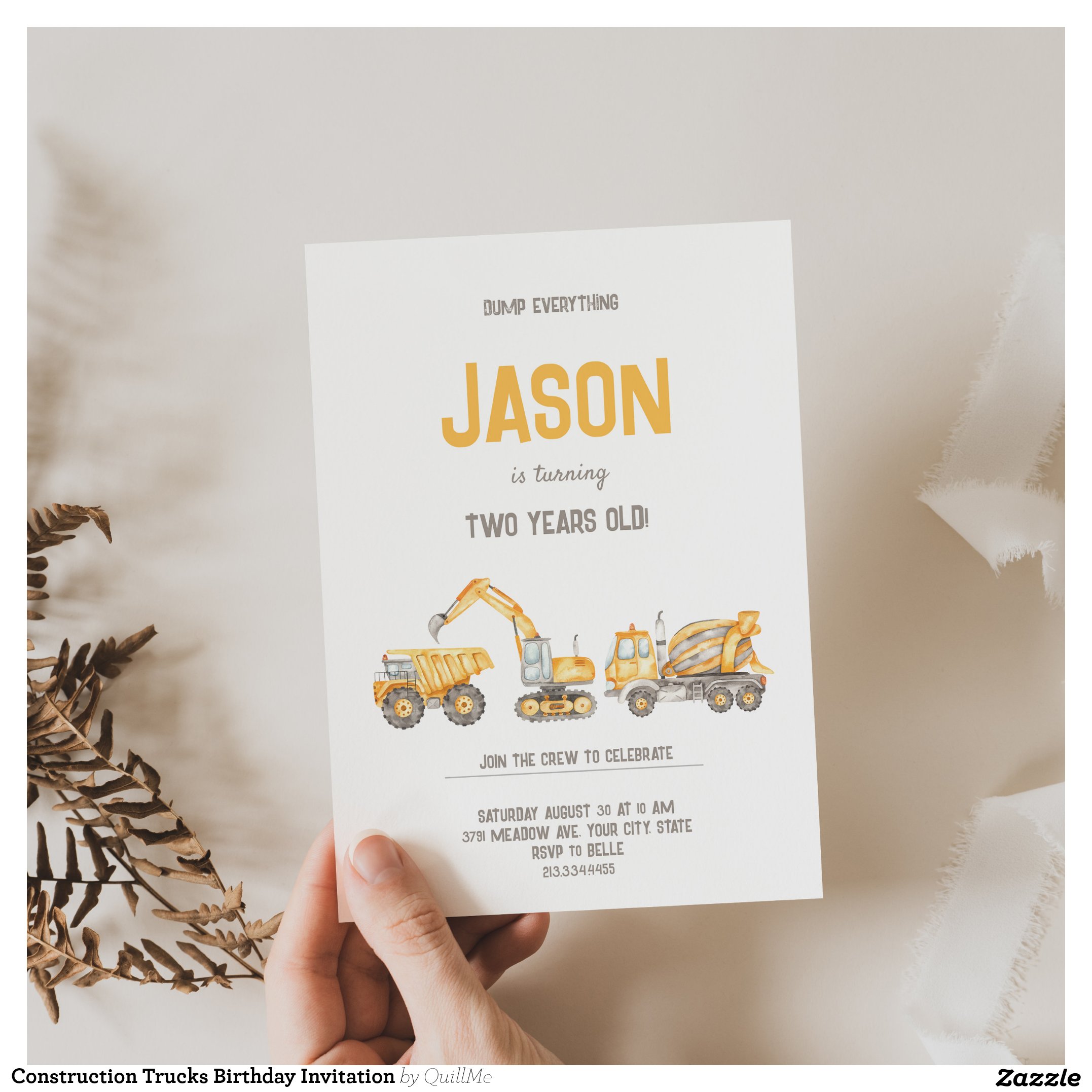 Be the first to review “Construction Trucks Birthday Invitation”