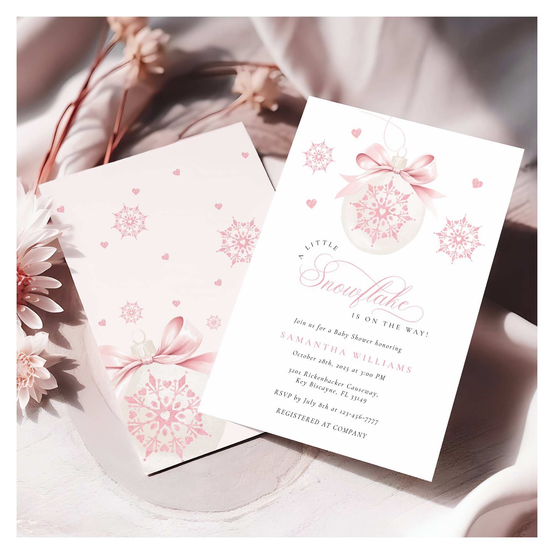 Be the first to review “Coquette Snowflake Pink Baby Shower Invitation”