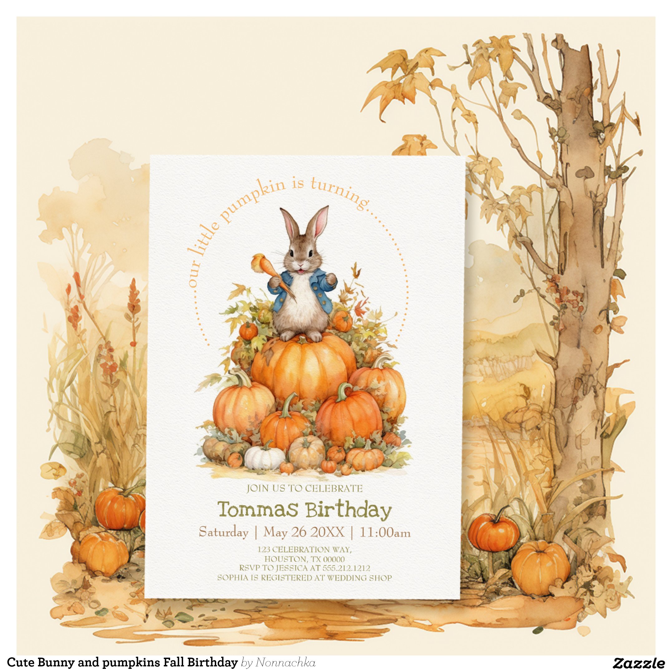 Be the first to review “Cute Bunny and pumpkins Fall Birthday Invitation”