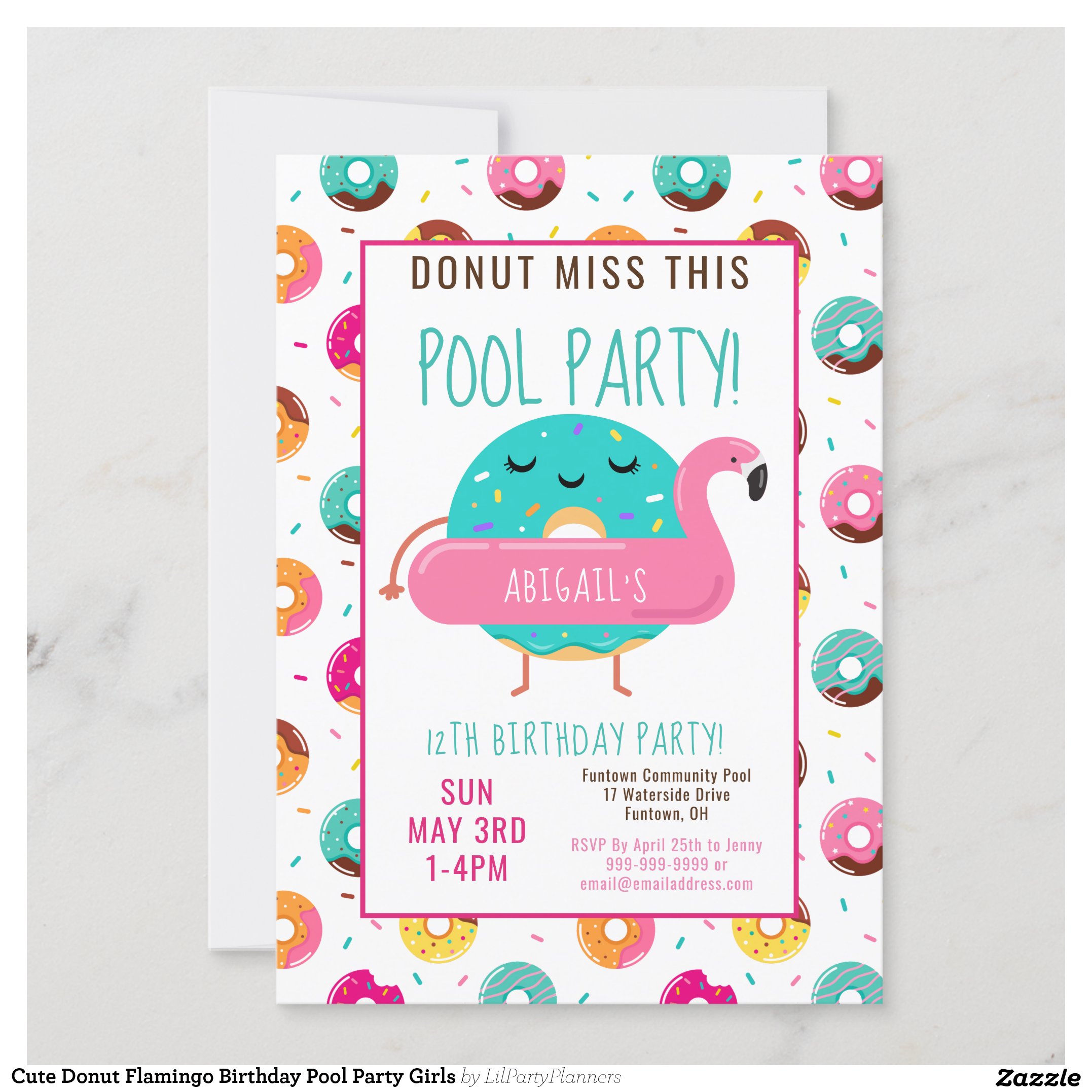 Be the first to review “Cute Donut Flamingo Birthday Pool Party Girls Invitation”