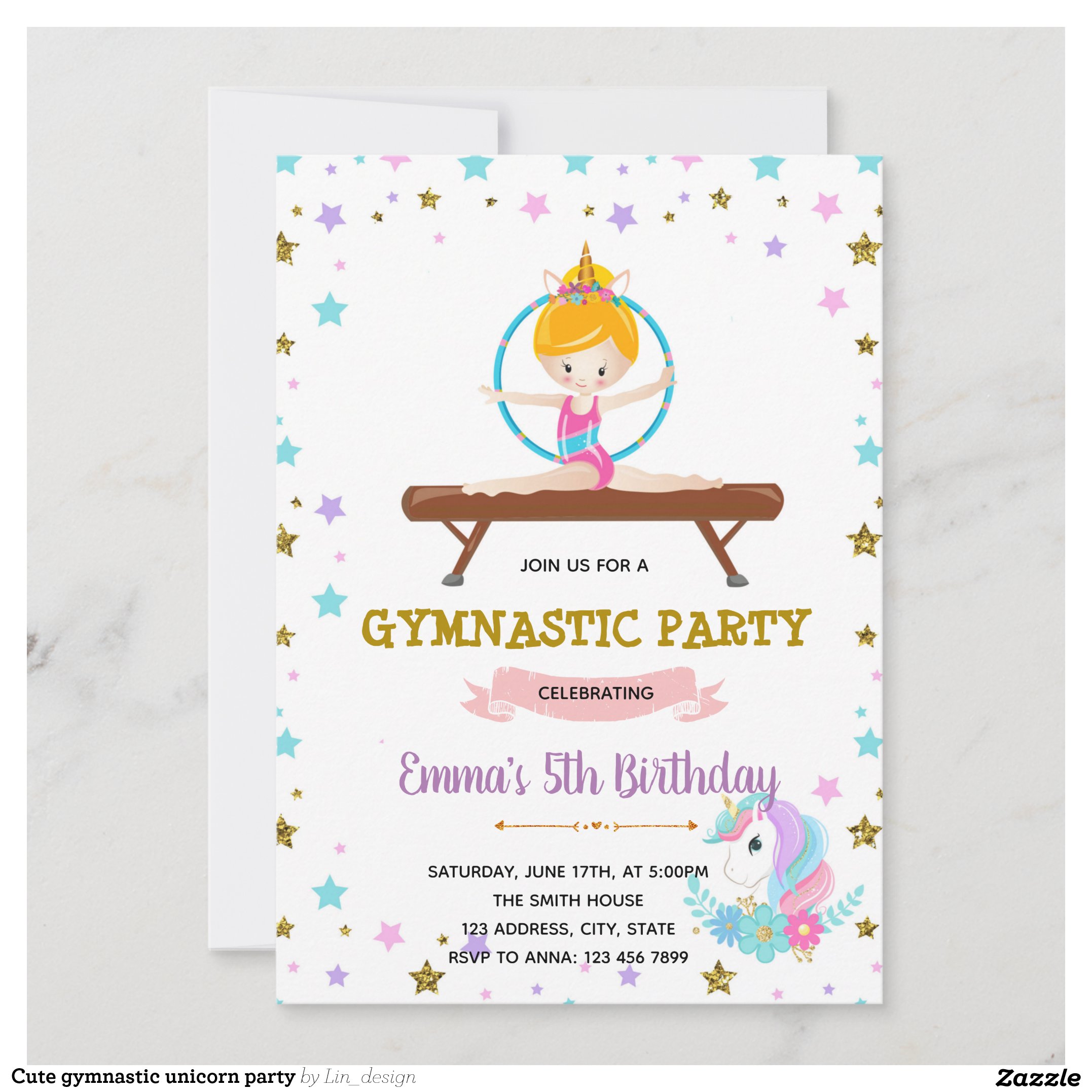Cute gymnastic unicorn party invitation