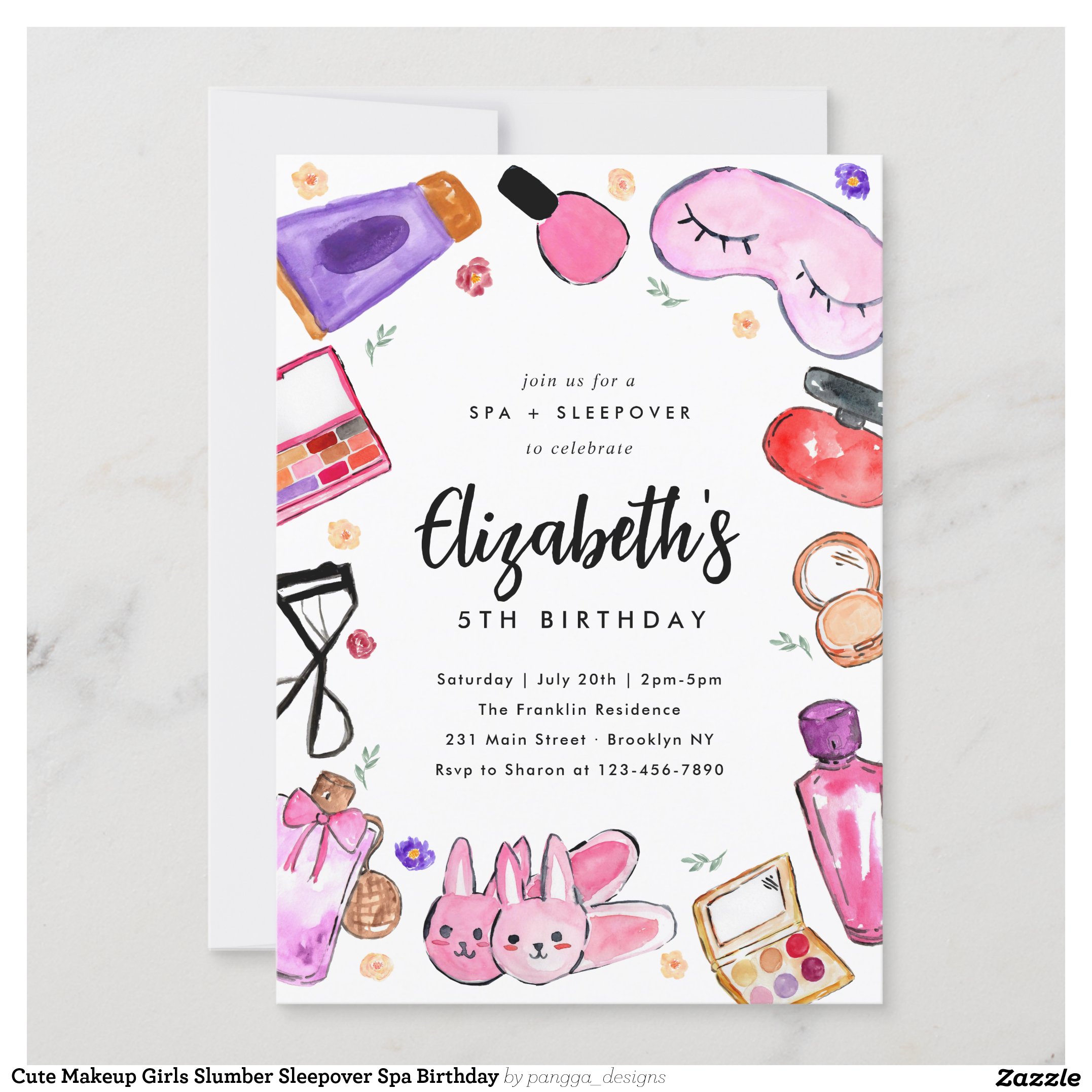 Cute Makeup Girls Slumber Sleepover Spa Birthday Invitation