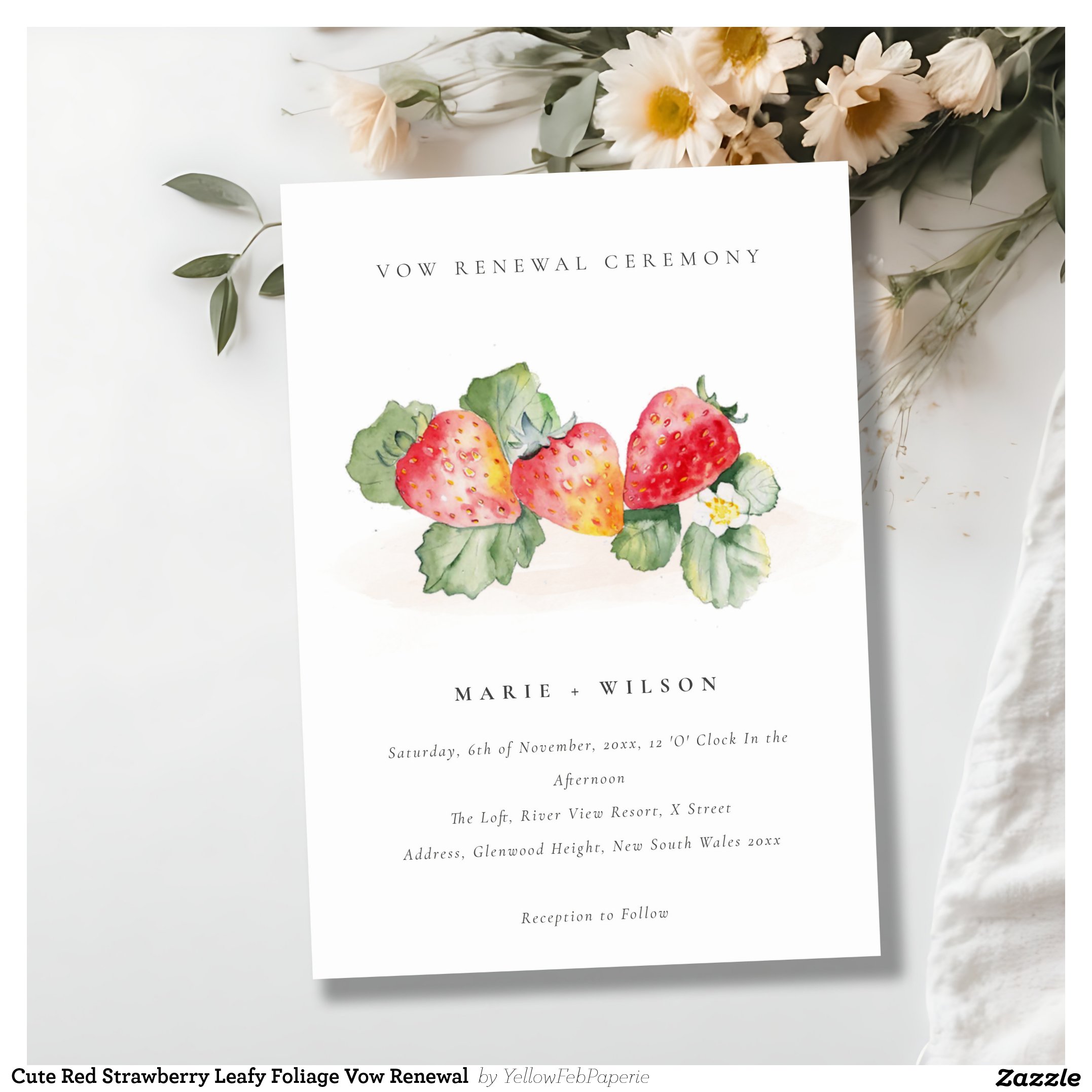 Be the first to review “Cute Red Strawberry Leafy Foliage Vow Renewal Invitation”