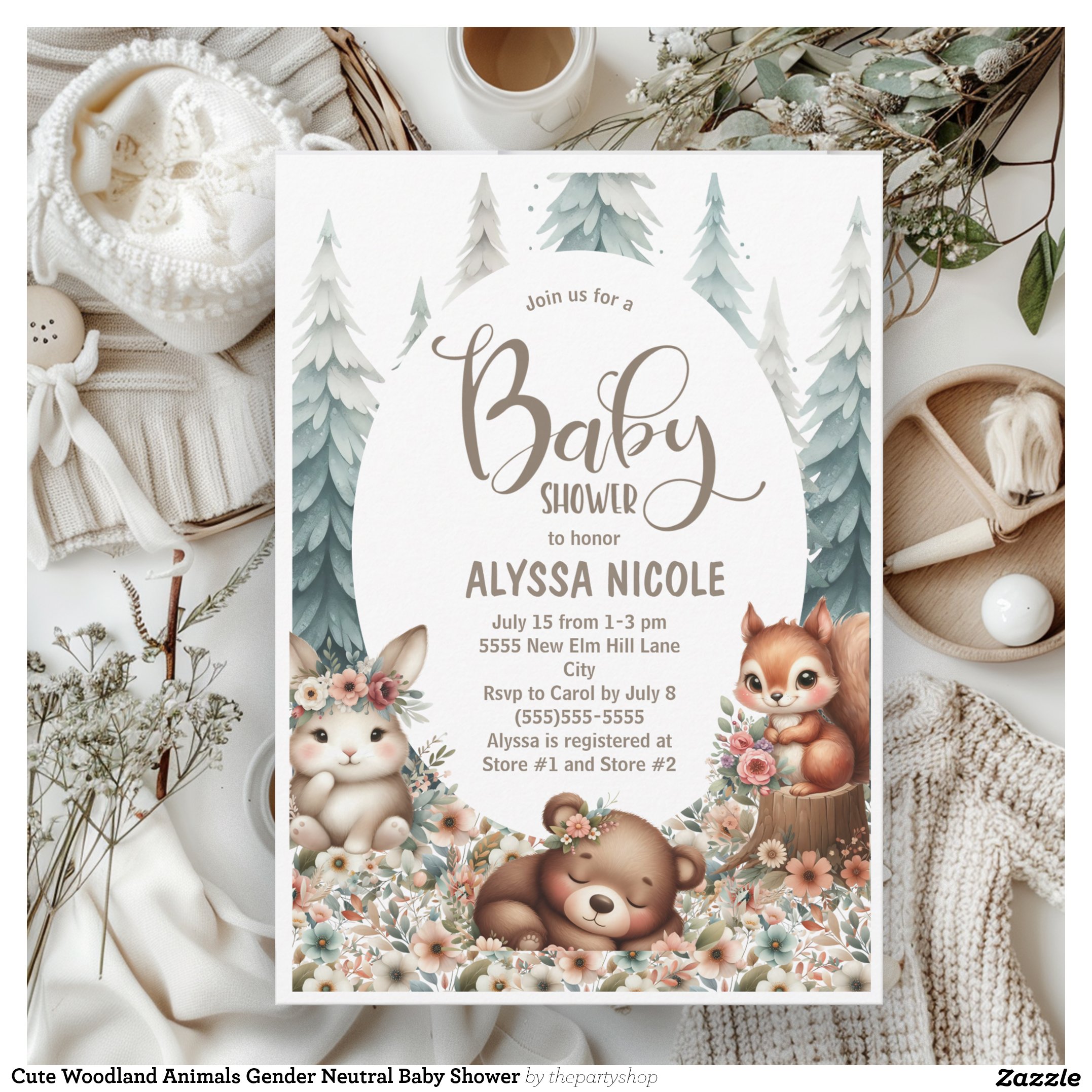 Cute Woodland Animals Gender Neutral Baby Shower Invitation