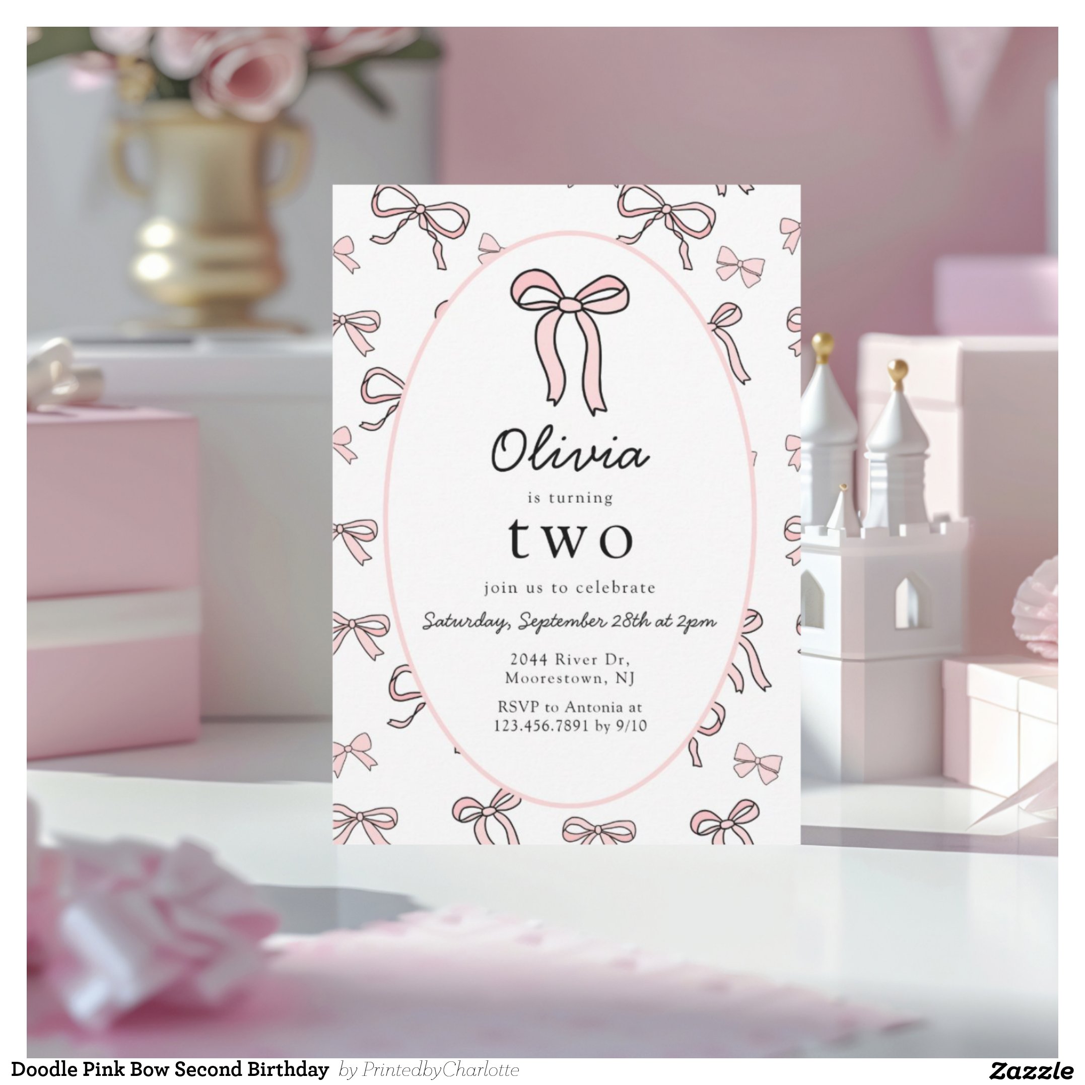 Be the first to review “Doodle Pink Bow Second Birthday Invitation”