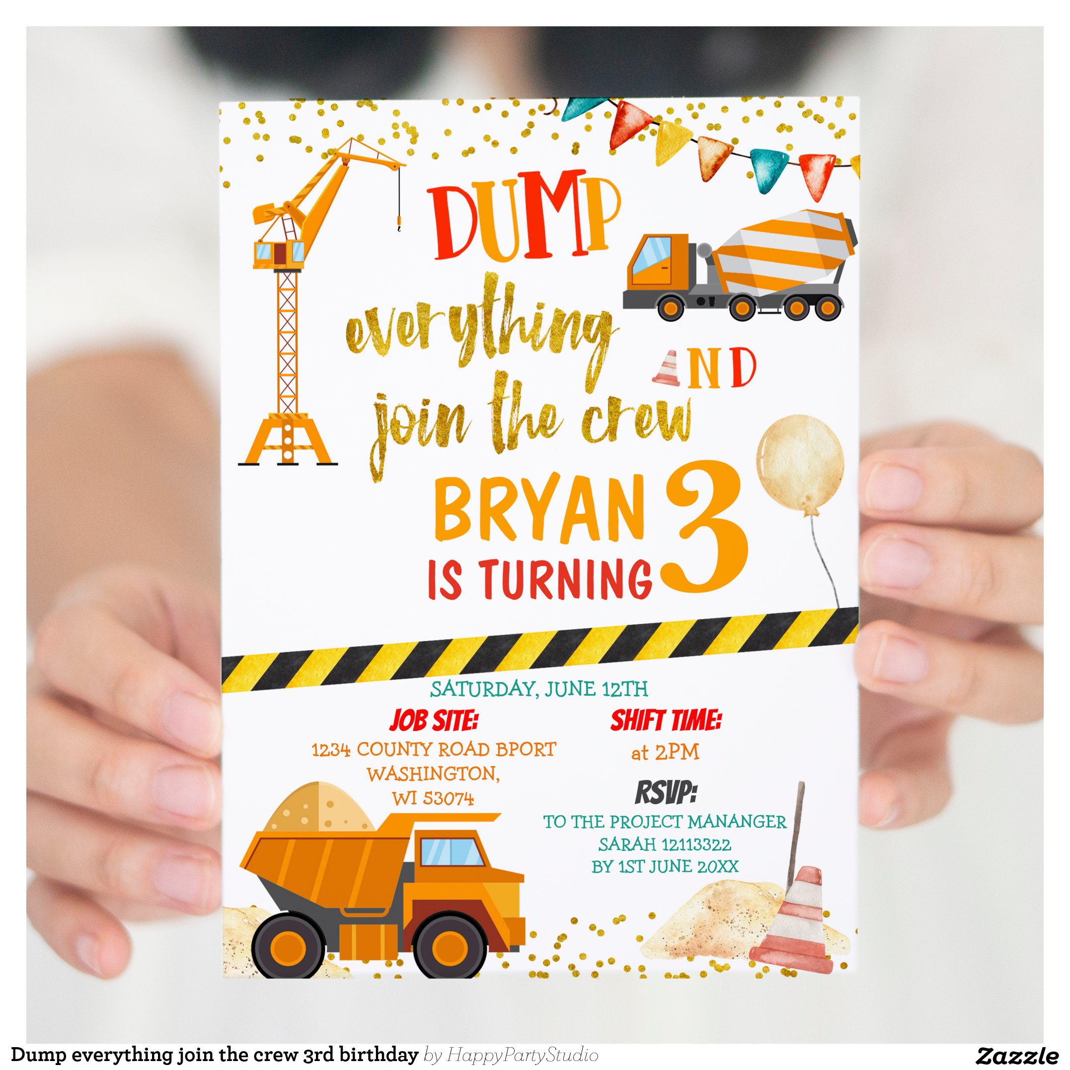 Dump everything join the crew 3rd birthday invitation