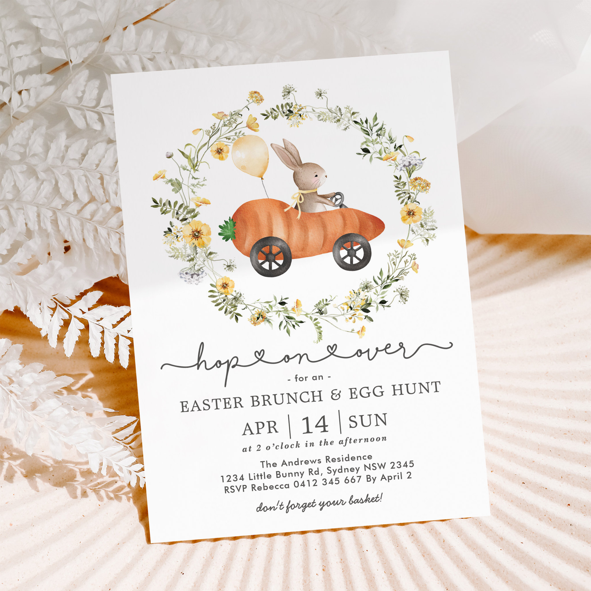 Easter Brunch & Egg Hunt Wildflower Bunny Invitation