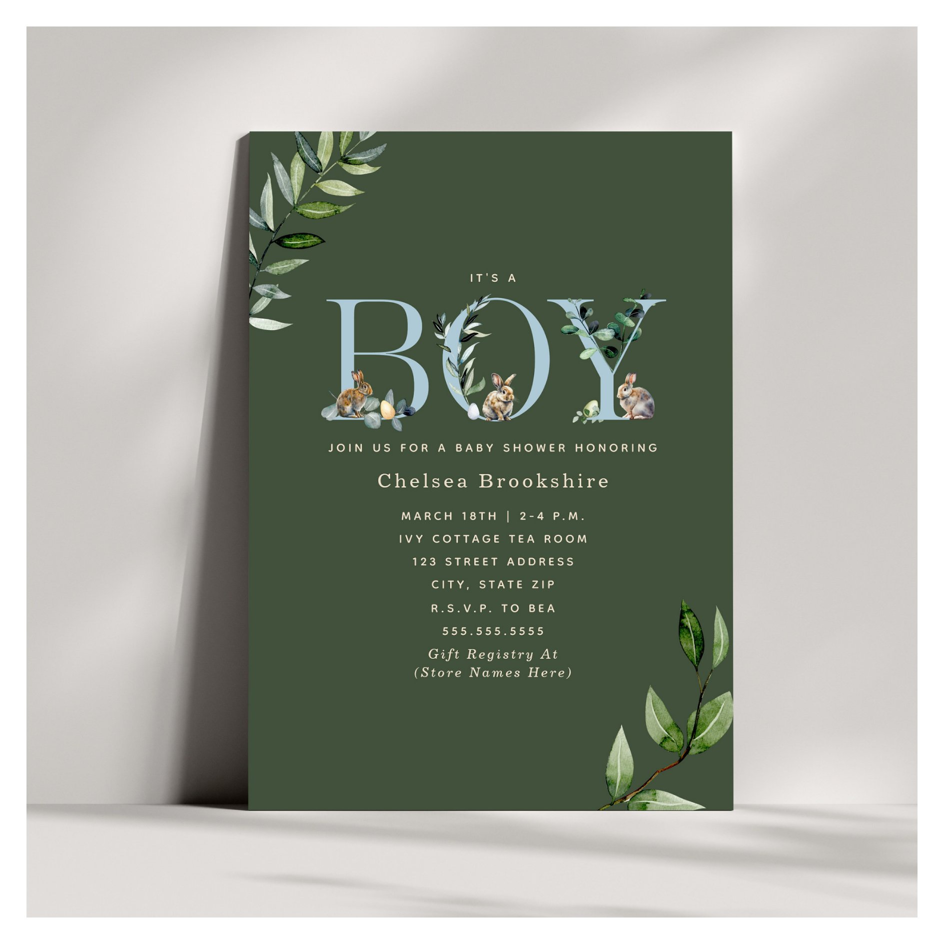 Be the first to review “Easter Bunny Eggs Green Boy Baby Shower Invitation”