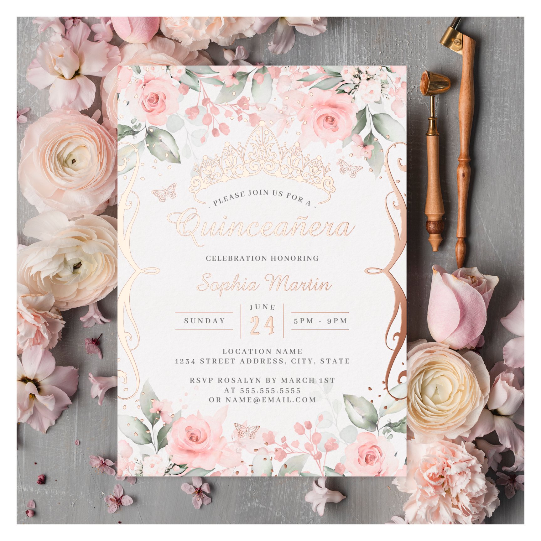 Be the first to review “Elegant Blush Pink Rose Gold Quinceanera Foil Invitation”