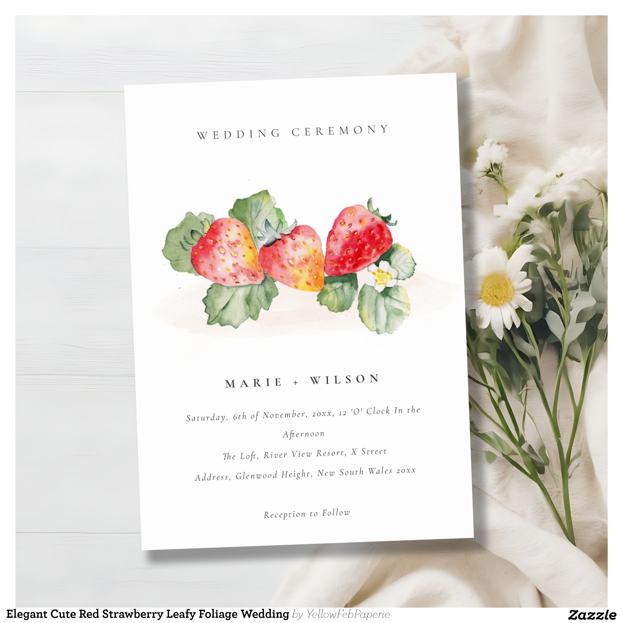 Be the first to review “Elegant Cute Red Strawberry Leafy Foliage Wedding Invitation”