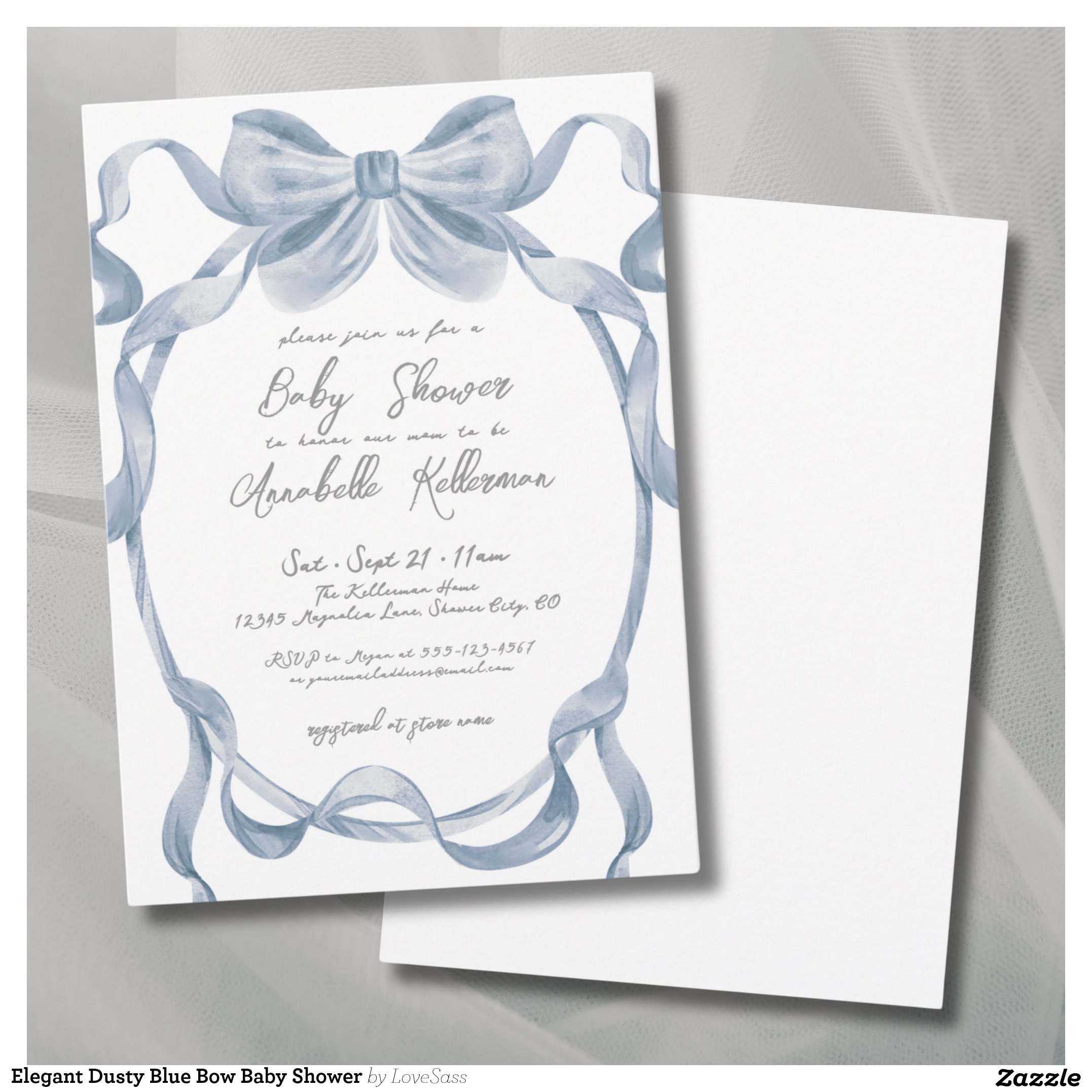 Be the first to review “Elegant Dusty Blue Bow Baby Shower Invitation”