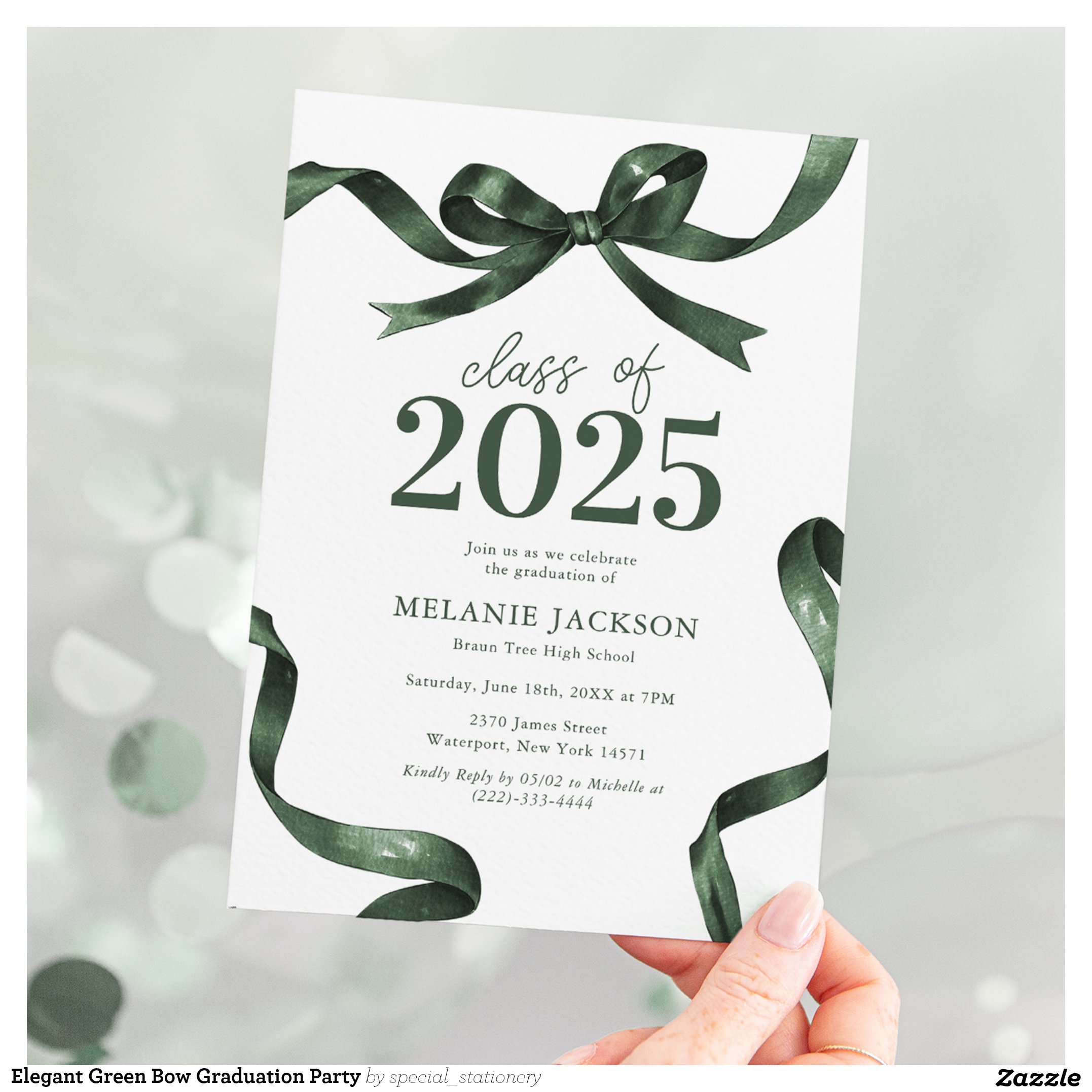 Be the first to review “Elegant Green Bow Graduation Party Invitation”