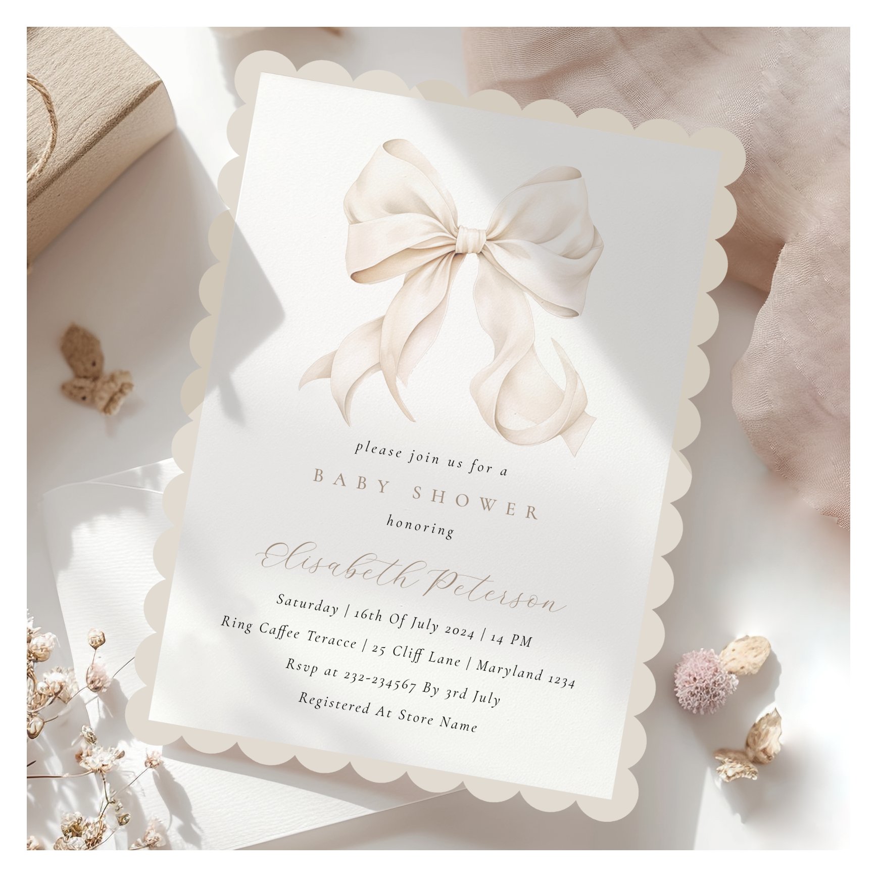 Be the first to review “Elegant Neutral Bow Baby Shower Invitation”