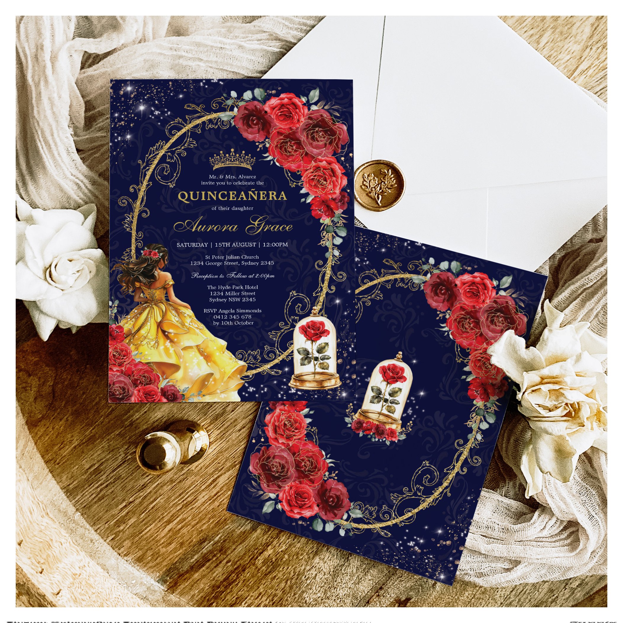 Be the first to review “Elegant Quincea?era Enchanted Red Roses Floral Invitation”