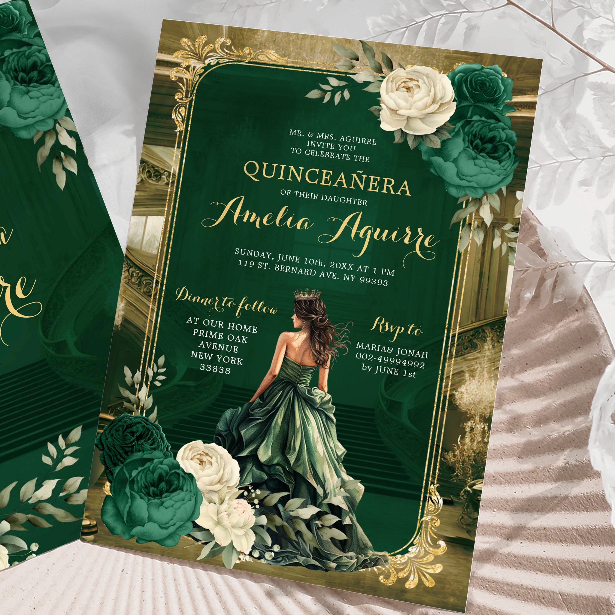 Emerald Green Royal Princess Palace Mis Quince Invitation