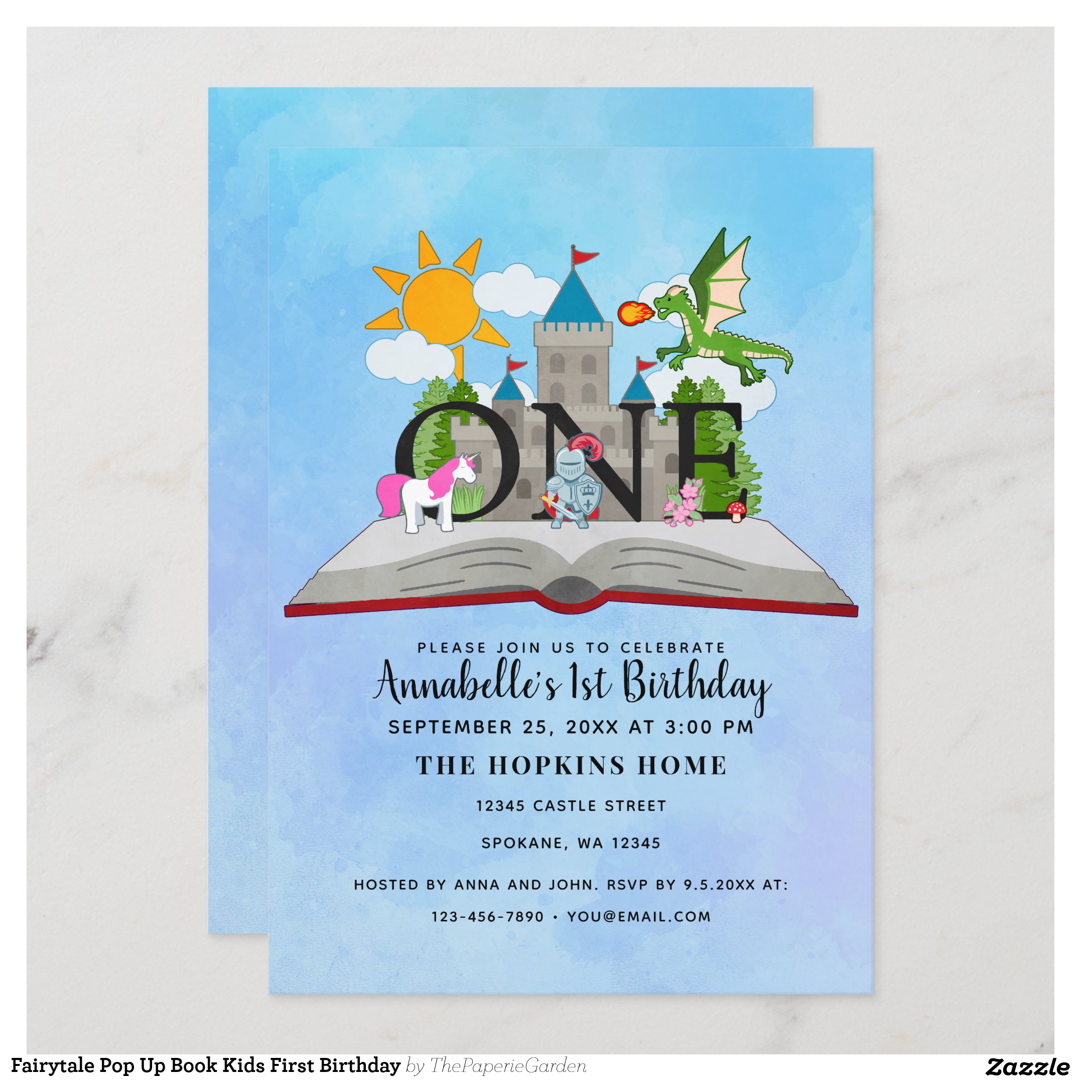 Fairytale Pop Up Book Kids First Birthday Invitation