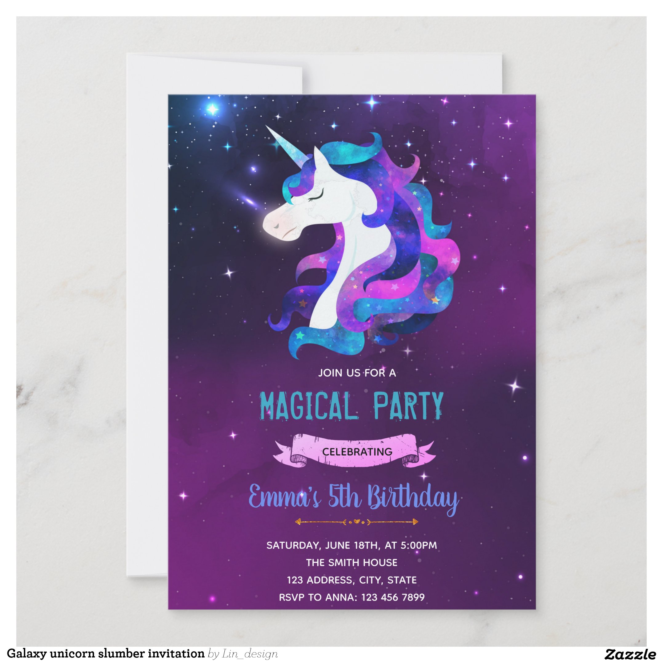 Galaxy unicorn slumber invitation