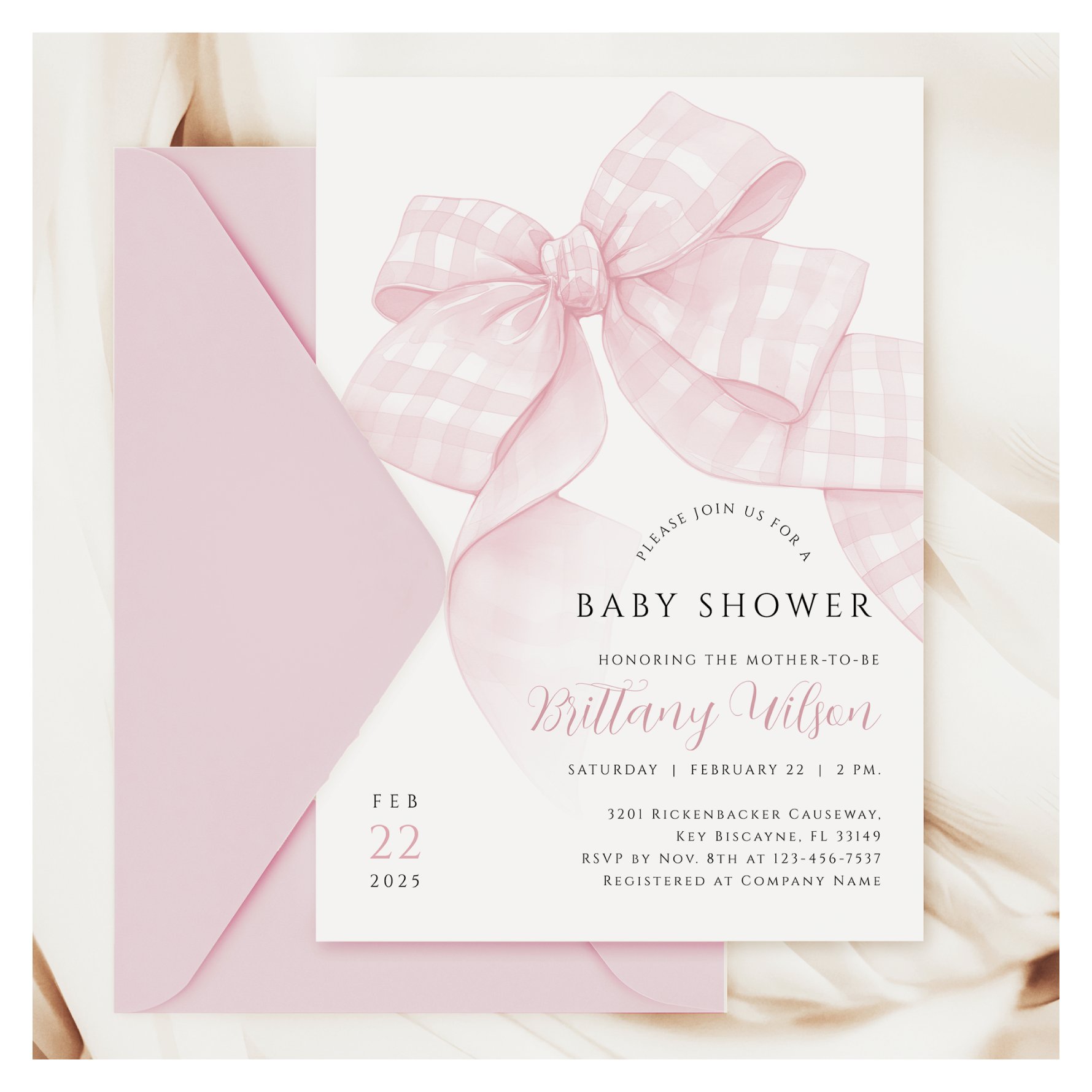Be the first to review “Gingham Pink Bow Baby Shower Invitation”