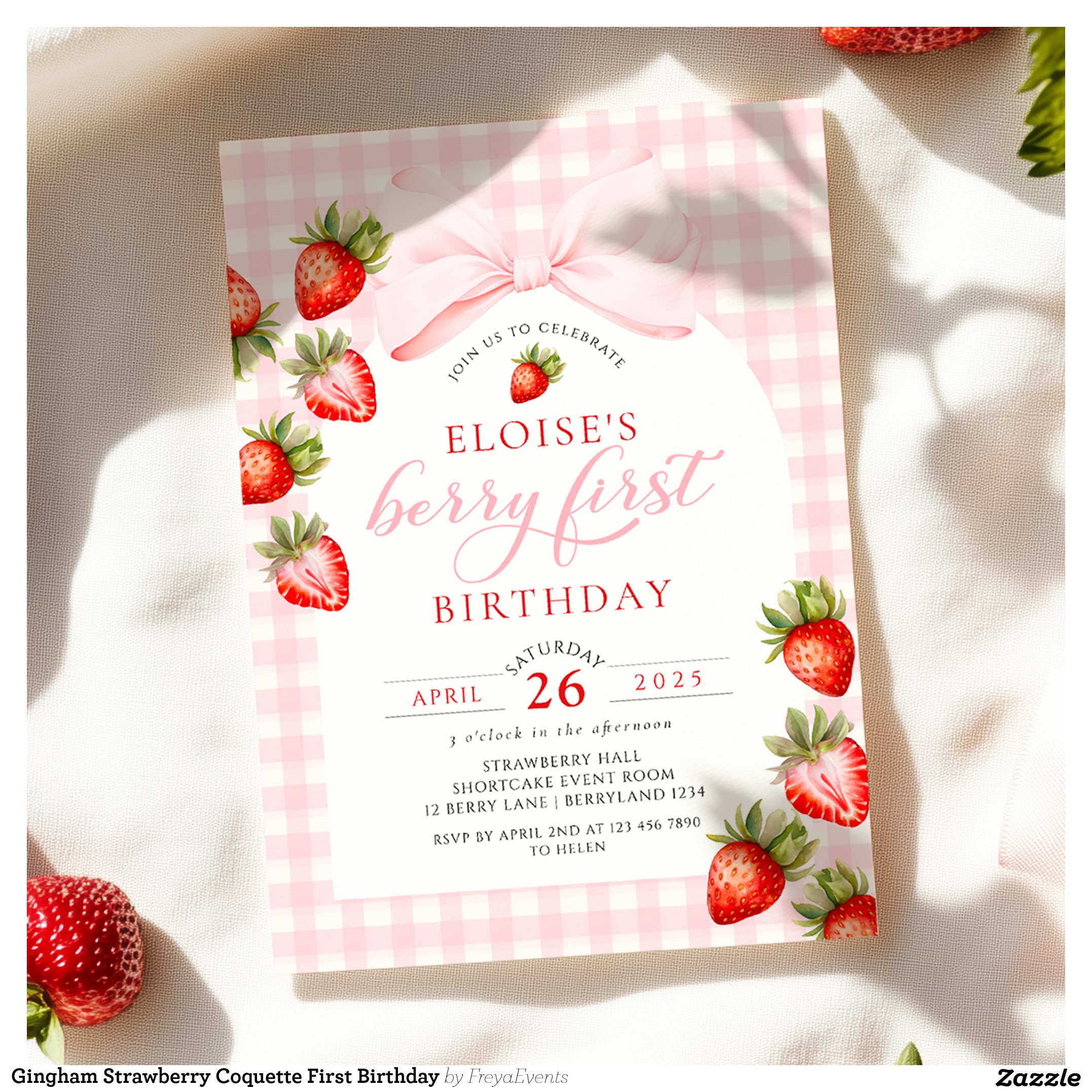 Be the first to review “Gingham Strawberry Coquette First Birthday Invitation”