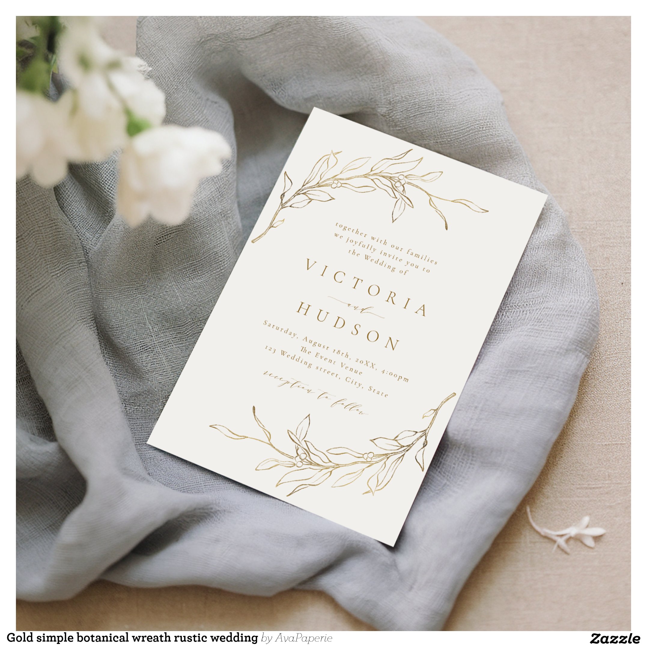 Be the first to review “Gold simple botanical wreath rustic wedding invitation”