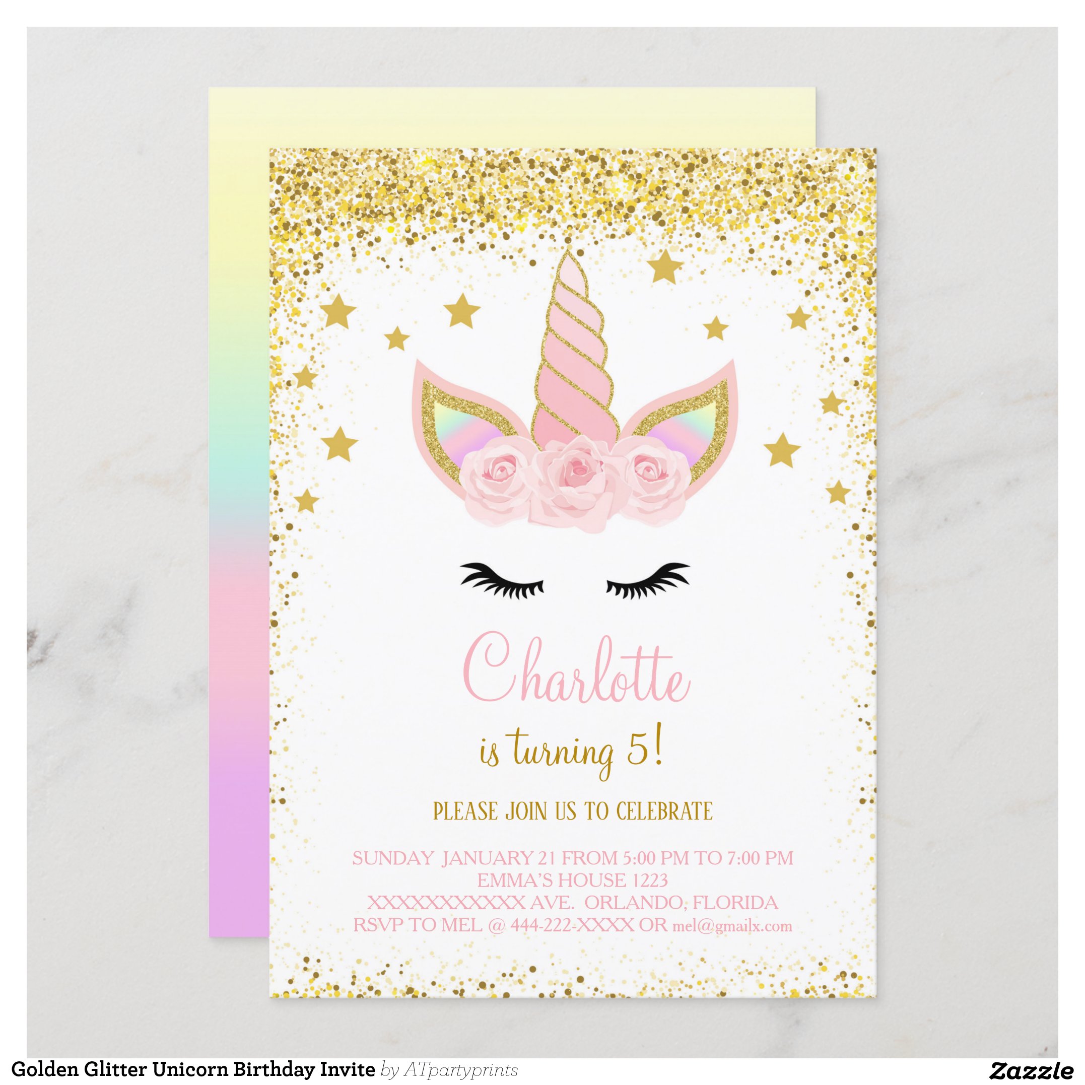 Be the first to review “Golden Glitter Unicorn Birthday Invite”