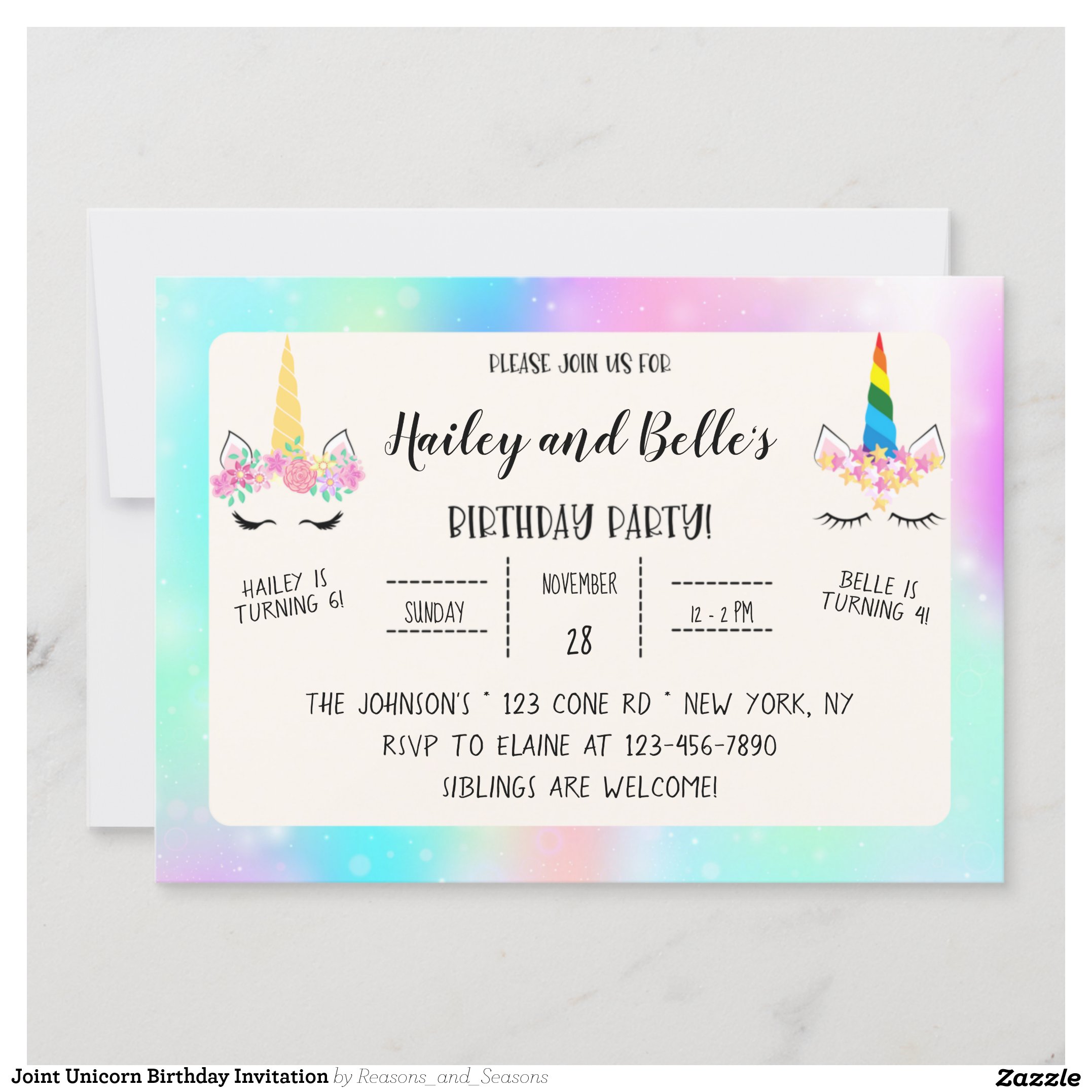 Be the first to review “Joint Unicorn Birthday Invitation”