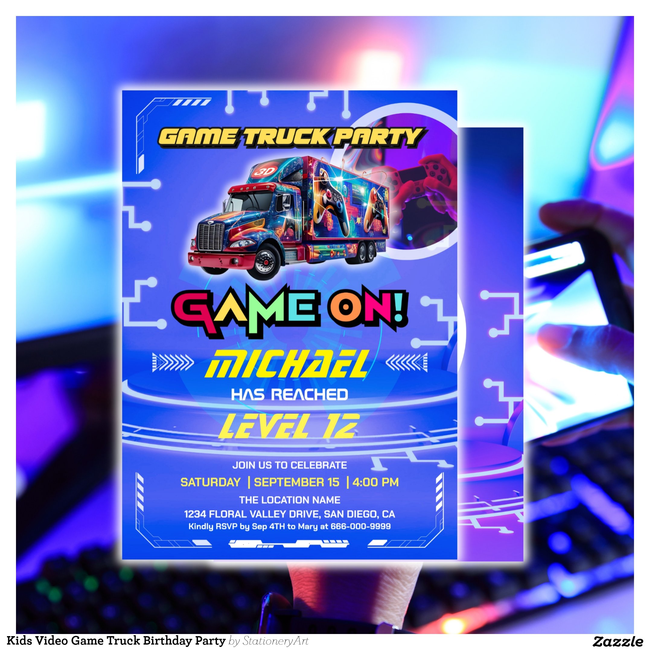 Kids Video Game Truck Birthday Party Invitation