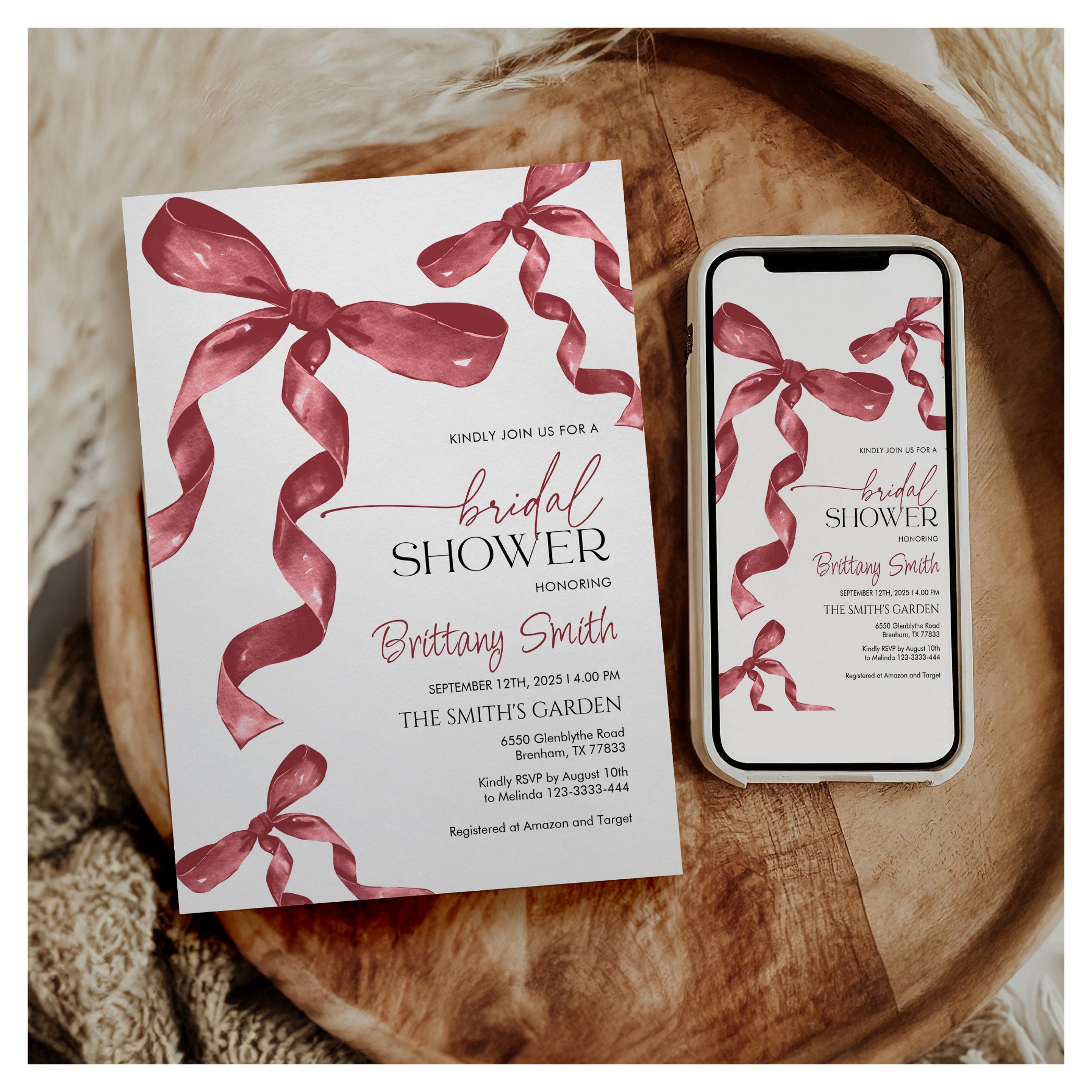 Be the first to review “Maroon Bow Coquette Bridal Shower Invitation”