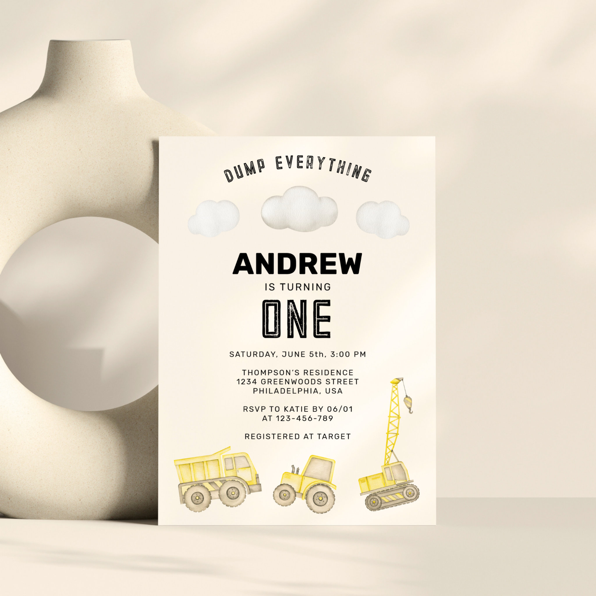 Be the first to review “Modern Cute Construction First Birthday Invitation”