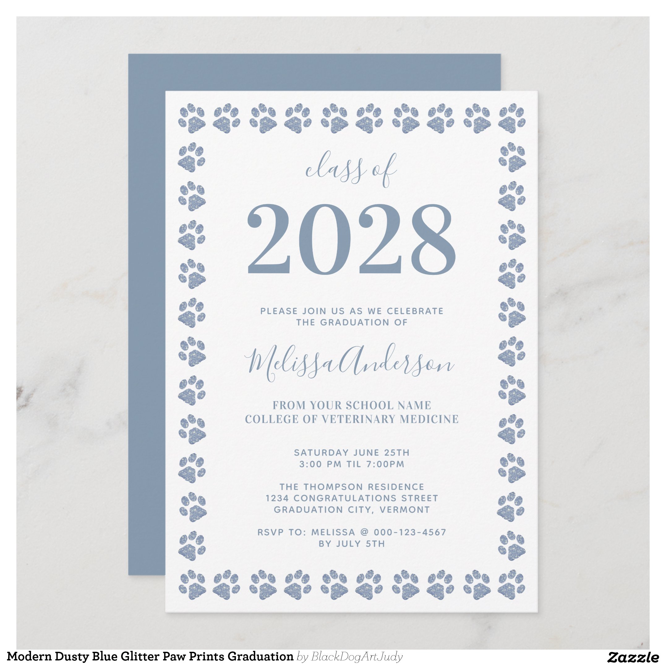 Be the first to review “Modern Dusty Blue Glitter Paw Prints Graduation Invitation”