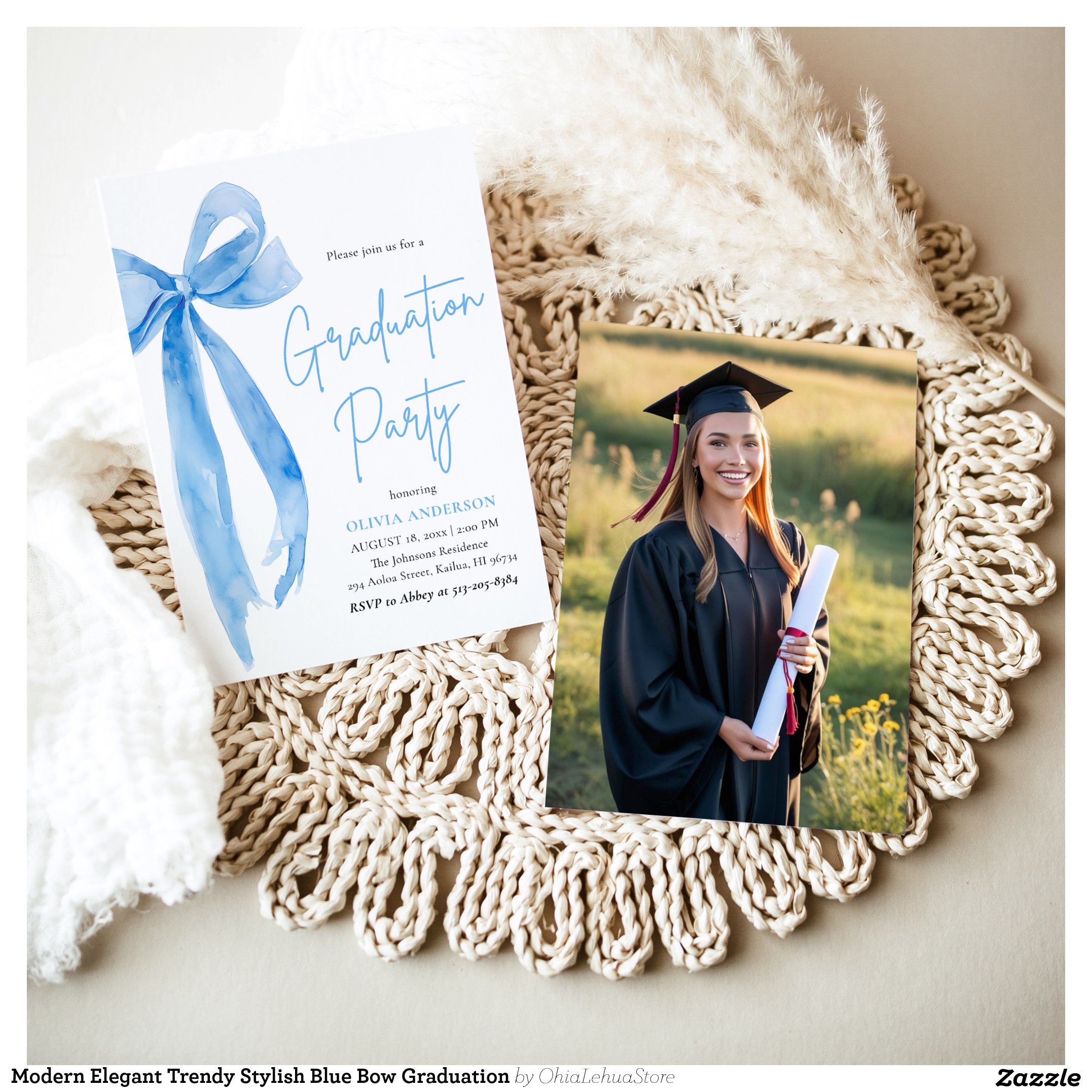 Modern Elegant Trendy Stylish Blue Bow Graduation Invitation