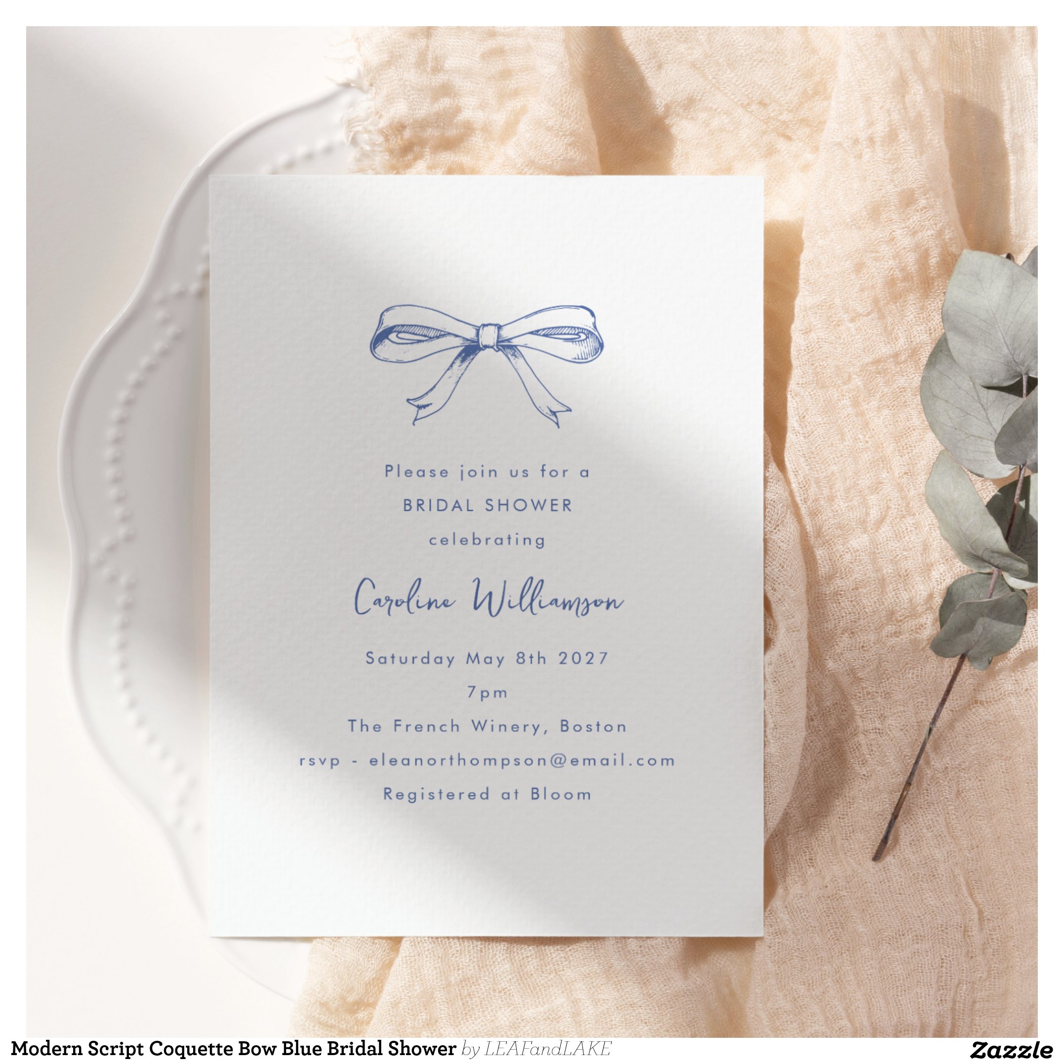 Be the first to review “Modern Script Coquette Bow Blue Bridal Shower Invitation”